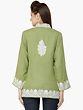 Sleeveless Aari Embroidered Wool Jacket in Turf Green with Paisley Motifs