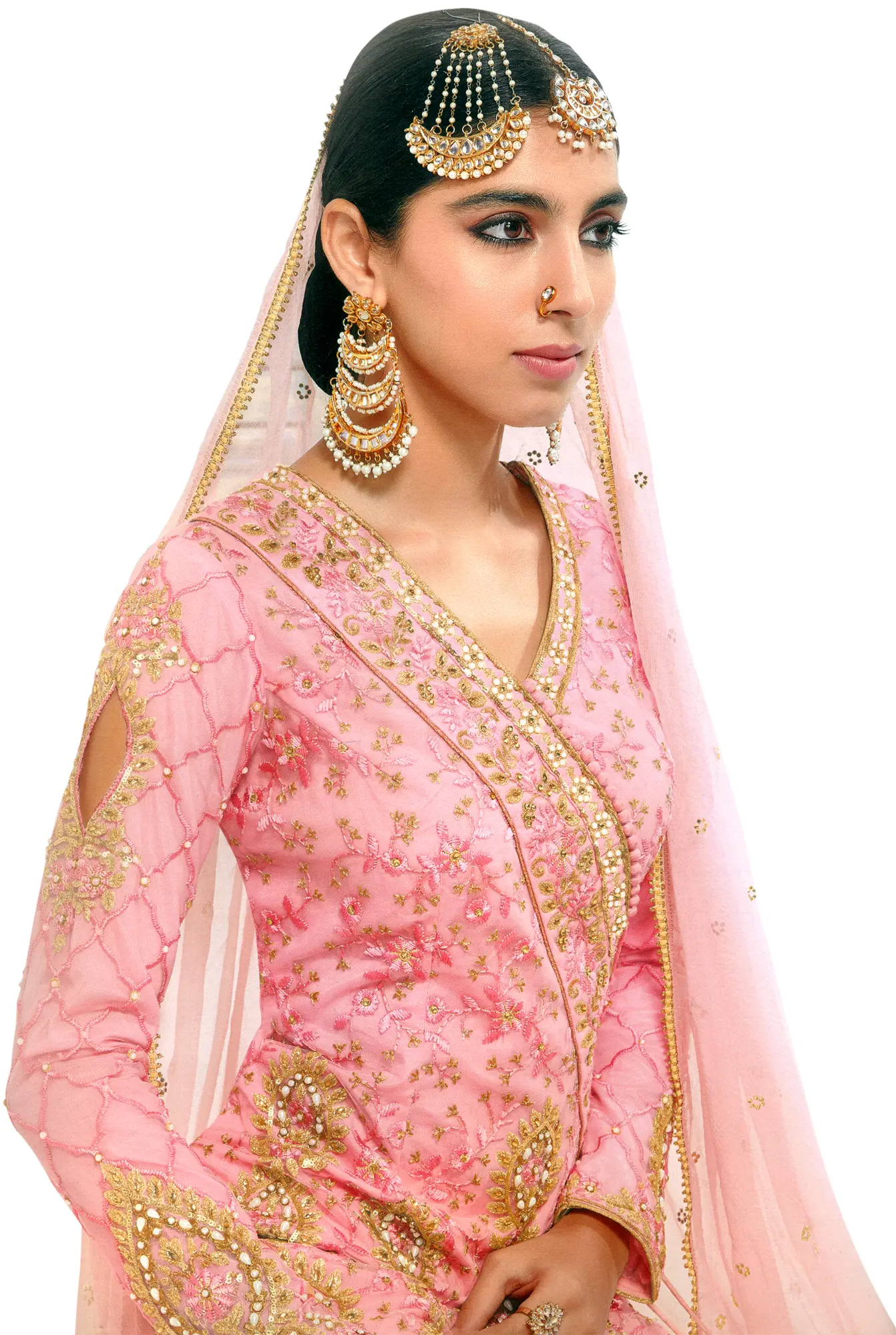Pale-Rose Georgette Designer Embroidery Work Short Kurti With Sharara And Dupatta