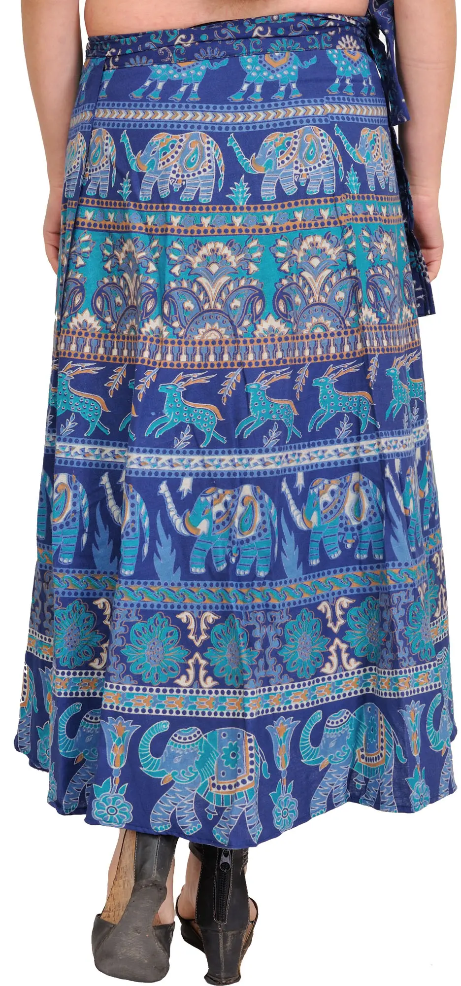 Wrap-Around Long Skirt from Pilkhuwa with Printed Paisleys and Elephants