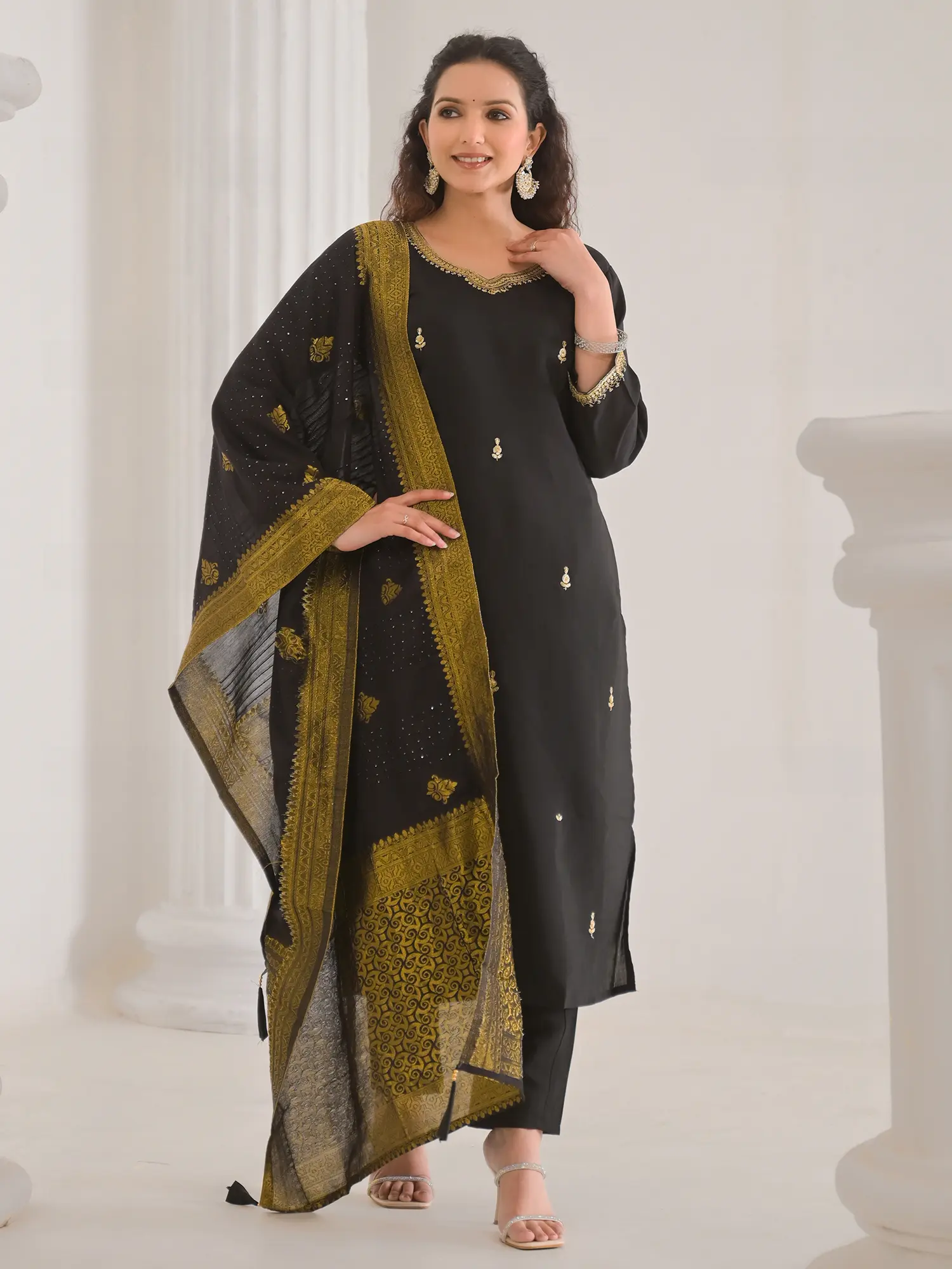 Viscose Embroidery And Sequins Work Ethnic Motifs Fancy Salwar Suit With Floral Printed Dupatta