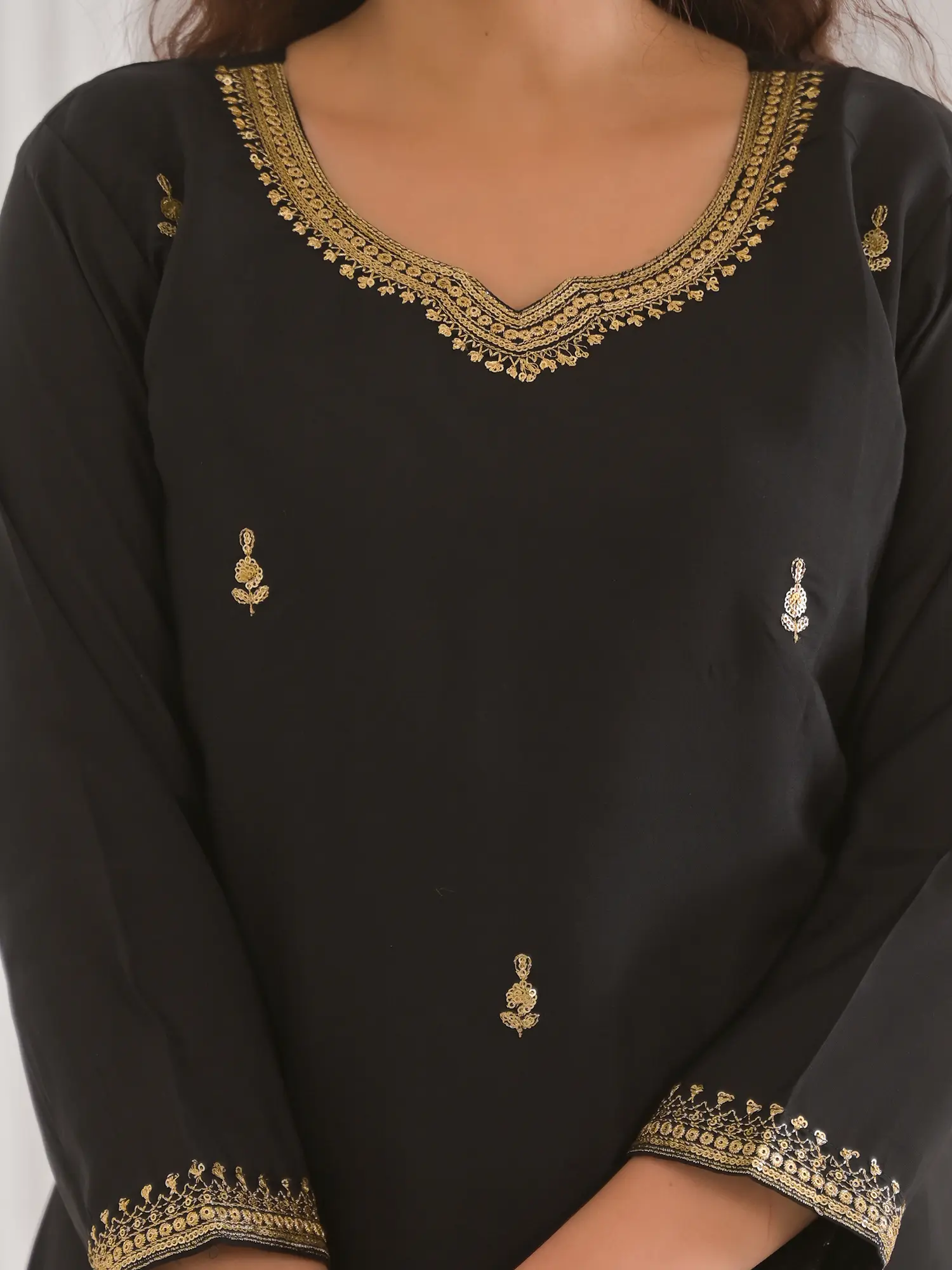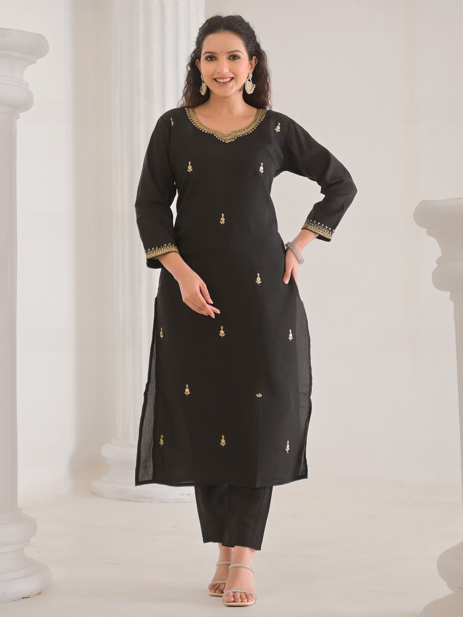 Rayon Slub Embroidered Ethnic Motifs Fancy Party Wear Kurta Set With Chinon Dupatta