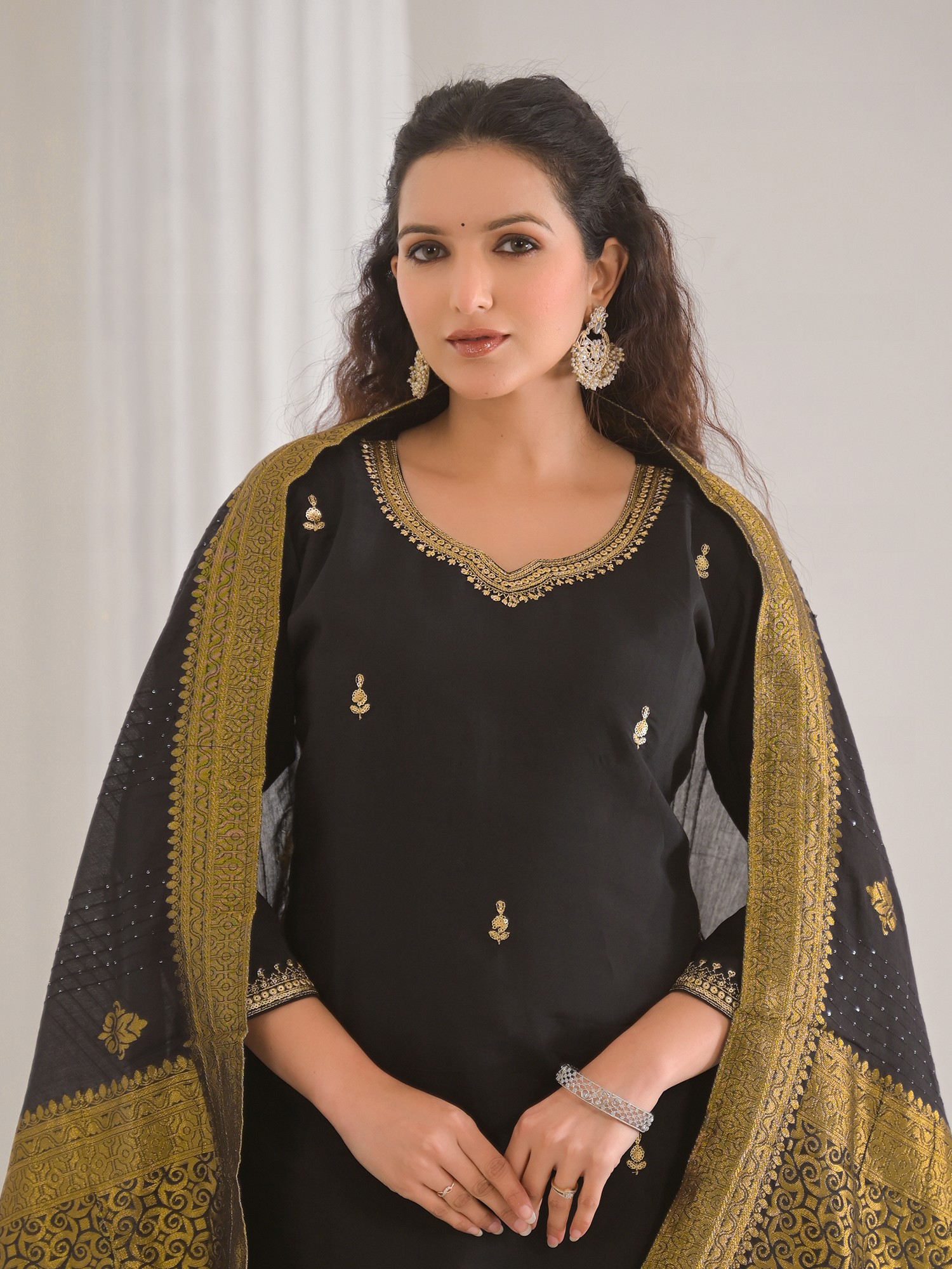 Viscose Organza Jacquard Beautiful Traditional Salwar Suit With Flower Motifs Dupatta