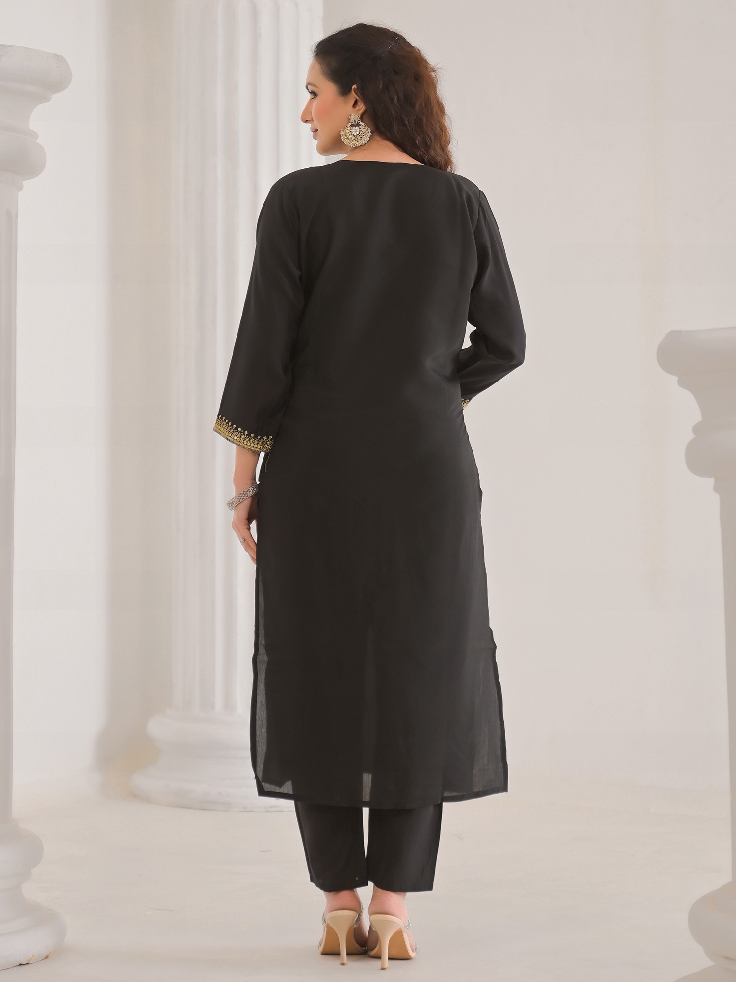 Crafted from viscose chanderi, this set promises a comfortable and flattering fit. The fabric drapes beautifully, accentuating your silhouette while allowing for ease of movement. This is a size #36 (Small). The kurta features a classic silhouette that complements a variety of body types.