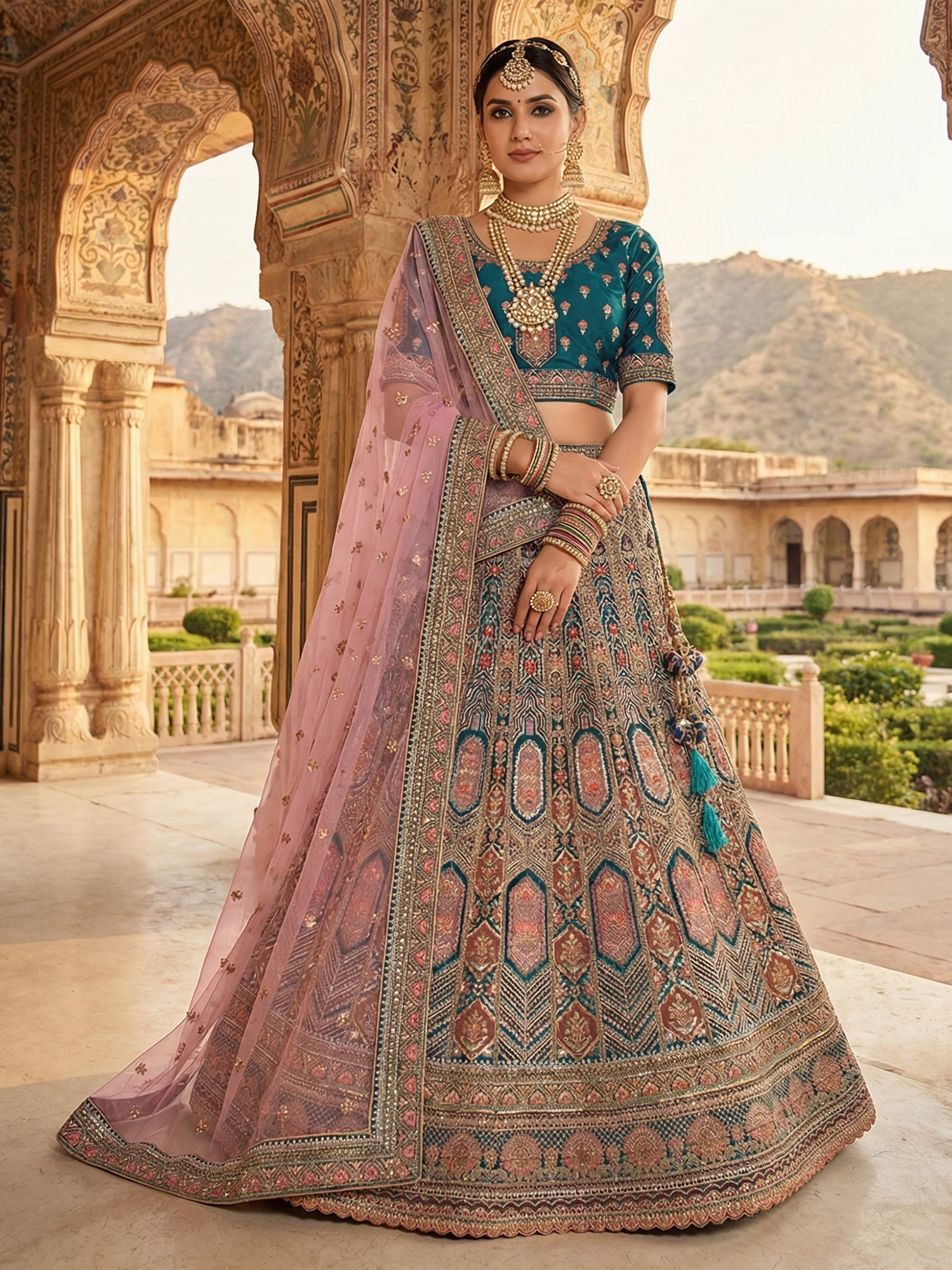 Gorgeous Lehenga Set In Taffeta Satin Silk With Intricate Dori Embroidery For Weddings And Festive Occasions