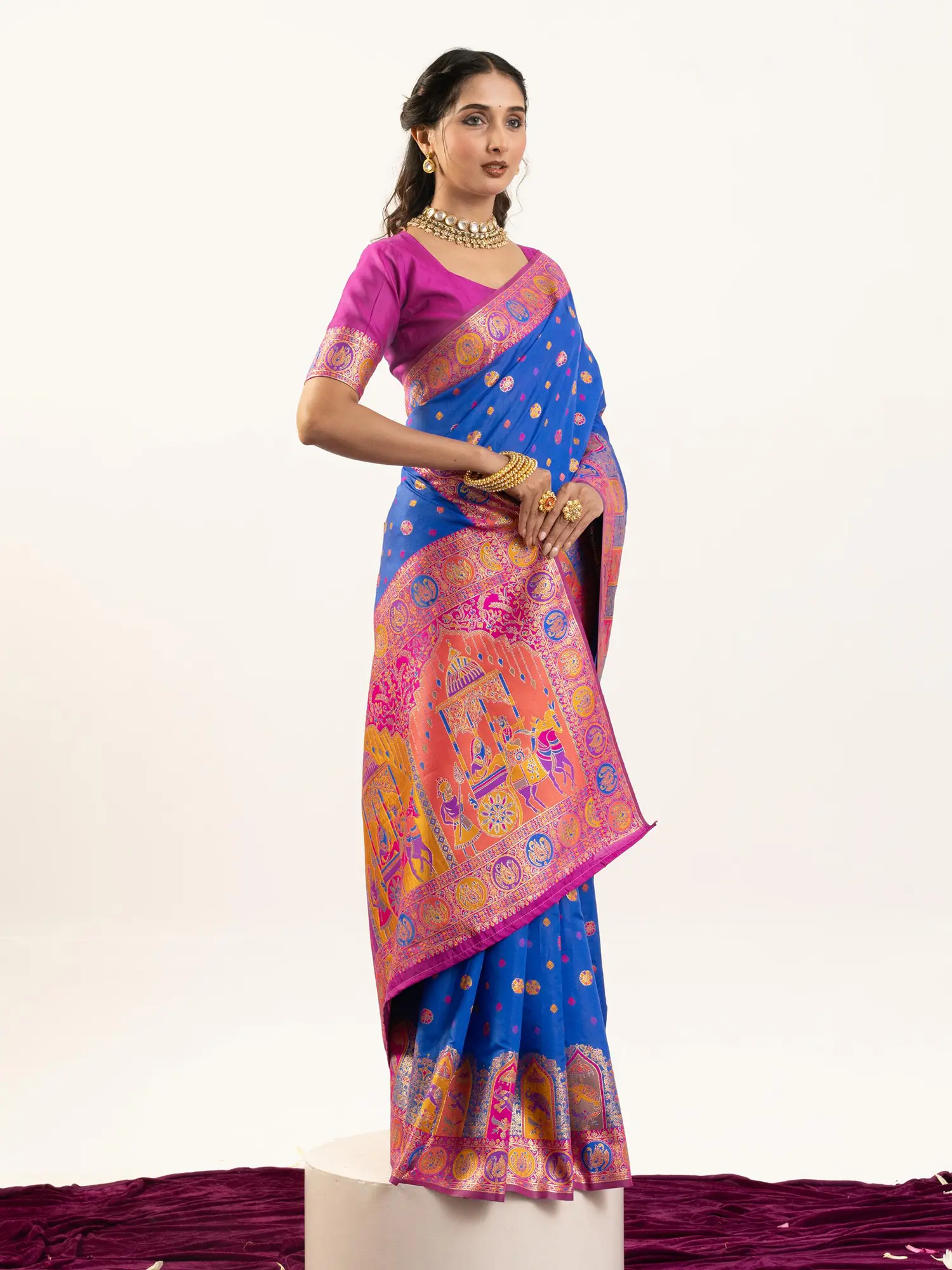 Imagine yourself making a grand entrance at a lavish wedding, the silk shimmering under the festive lights, or gracing a significant celebratory event with unparalleled poise. This is the perfect choice for engagements, anniversaries, cultural galas, and any occasion where you wish to express sophisticated style and a deep appreciation for fine craftsmanship. Pair it with statement jewelry to complete an ensemble that is both breathtaking and unforgettable.