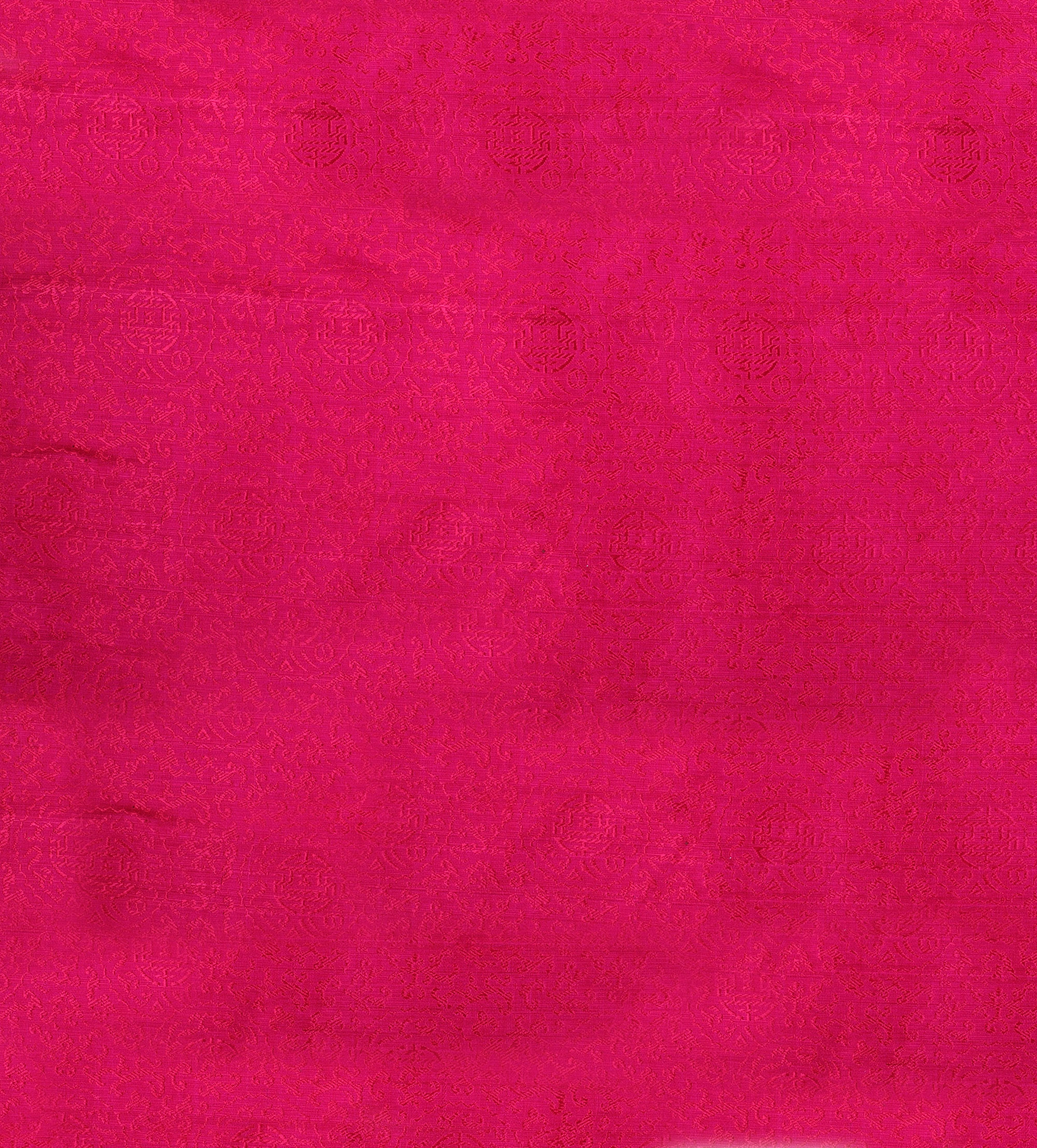 This magnificent fabric from Banaras is a mesmerizing masterpiece produced by the Kasim family’s talented craftsmen. This Art Silk fabric exudes classic beauty, embellished with the Eight Symbols of Good Fortune (Tib. Bkra-shis rtags-brgyad, Skt. Ashtamangala), which represent prosperity and harmony. Each thread whispers stories of heritage and craftsmanship, creating a symphony of cultural richness. The brilliant color and elaborate patterns dance together to capture the essence of Banaras. Enrich your creation with this art piece, a tribute to tradition and creativity. With this extraordinary fabric, you may immerse yourself in the allure of Banaras, where each weave tells a narrative of luxury and beauty.
