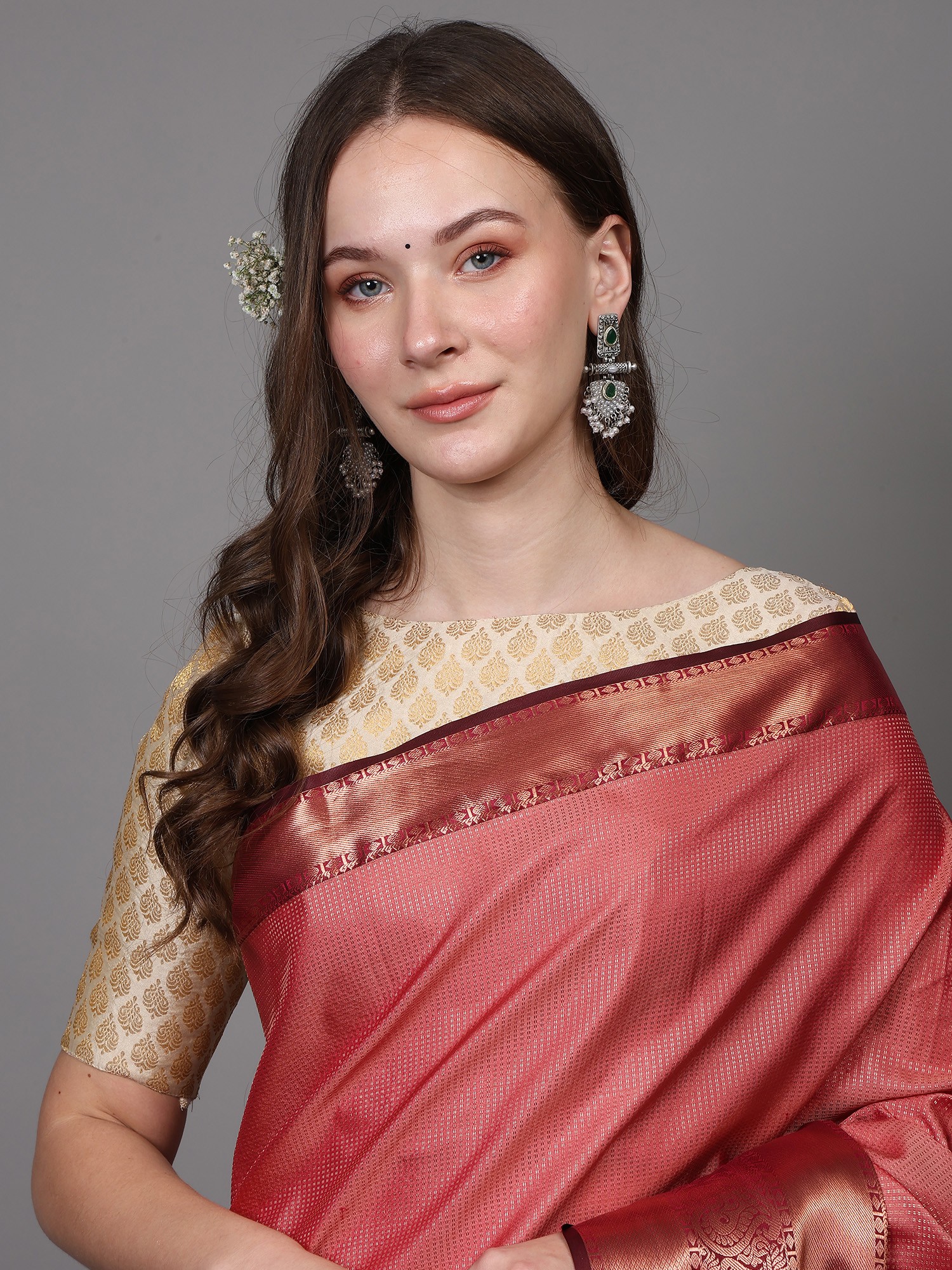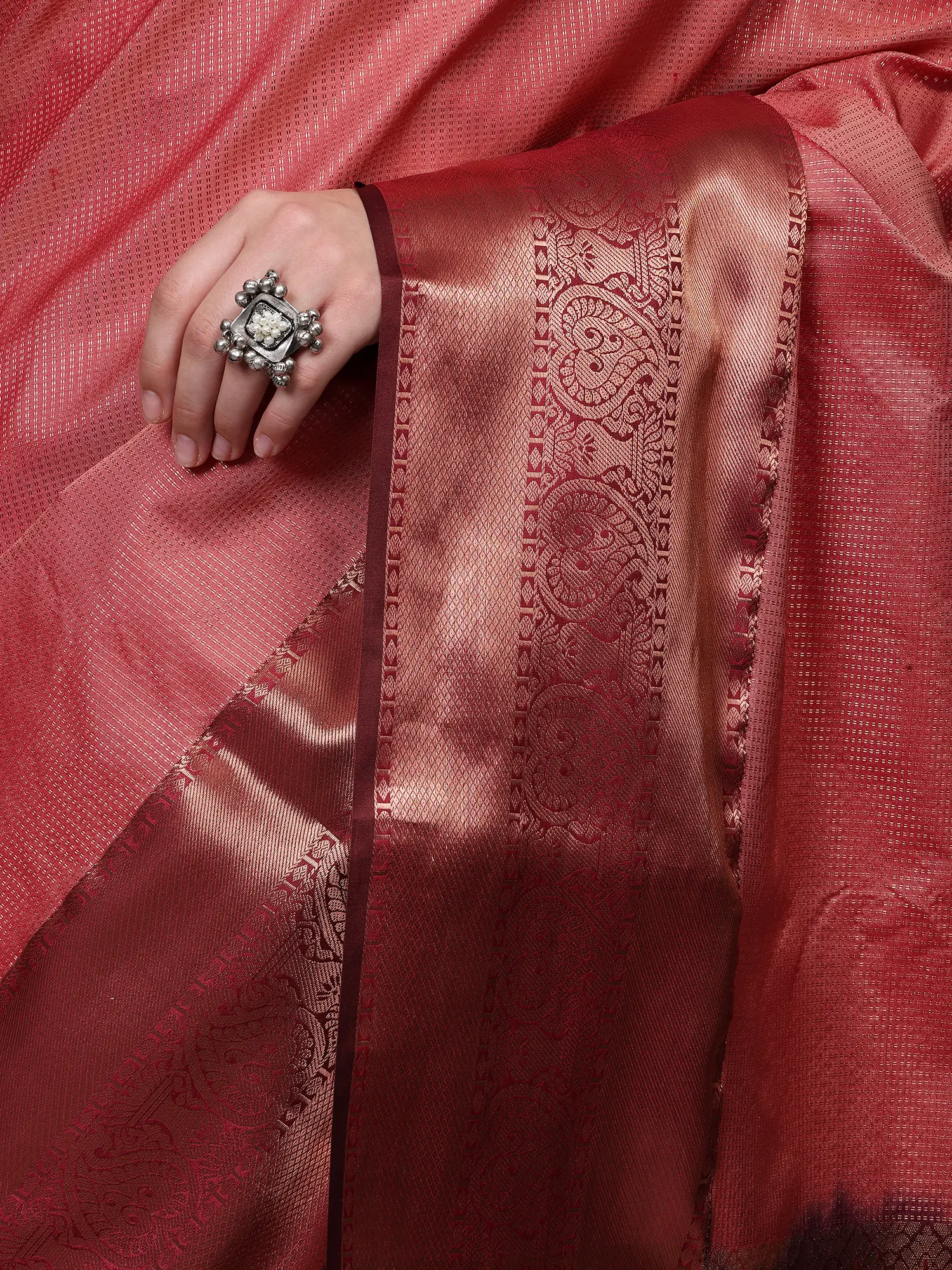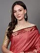 Silk Sari from Chennai with Woven Motifs and Border