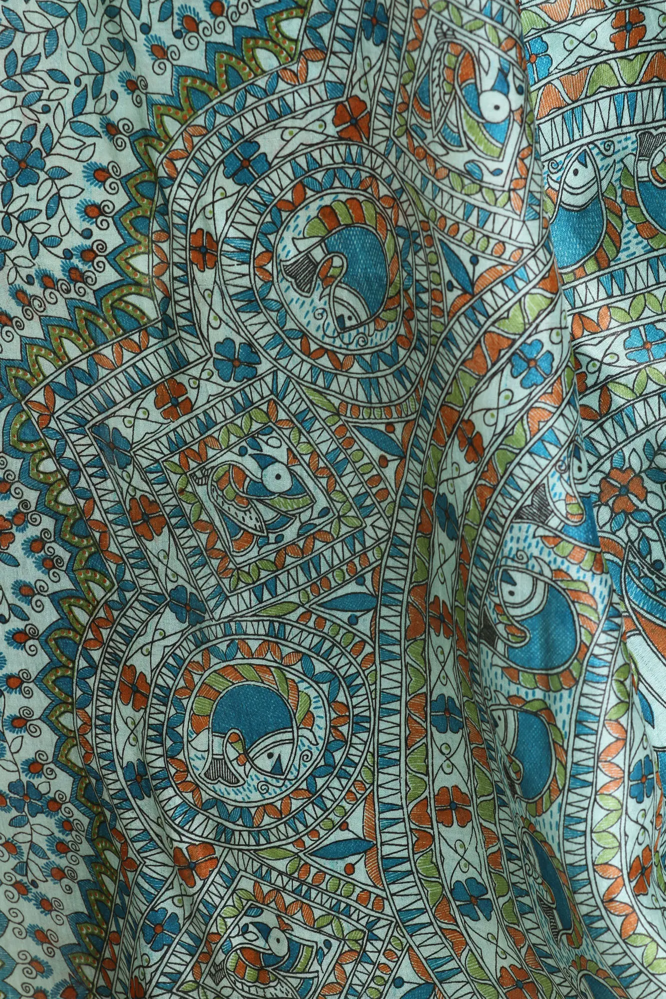 Algiers-Blue Fabric Border with Digital-Printed Madhubani Folk Motifs