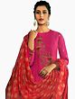 Fandango-Pink Floor-Length A-Line Suit with Floral Aari Embroidery and Printed Red Dupatta