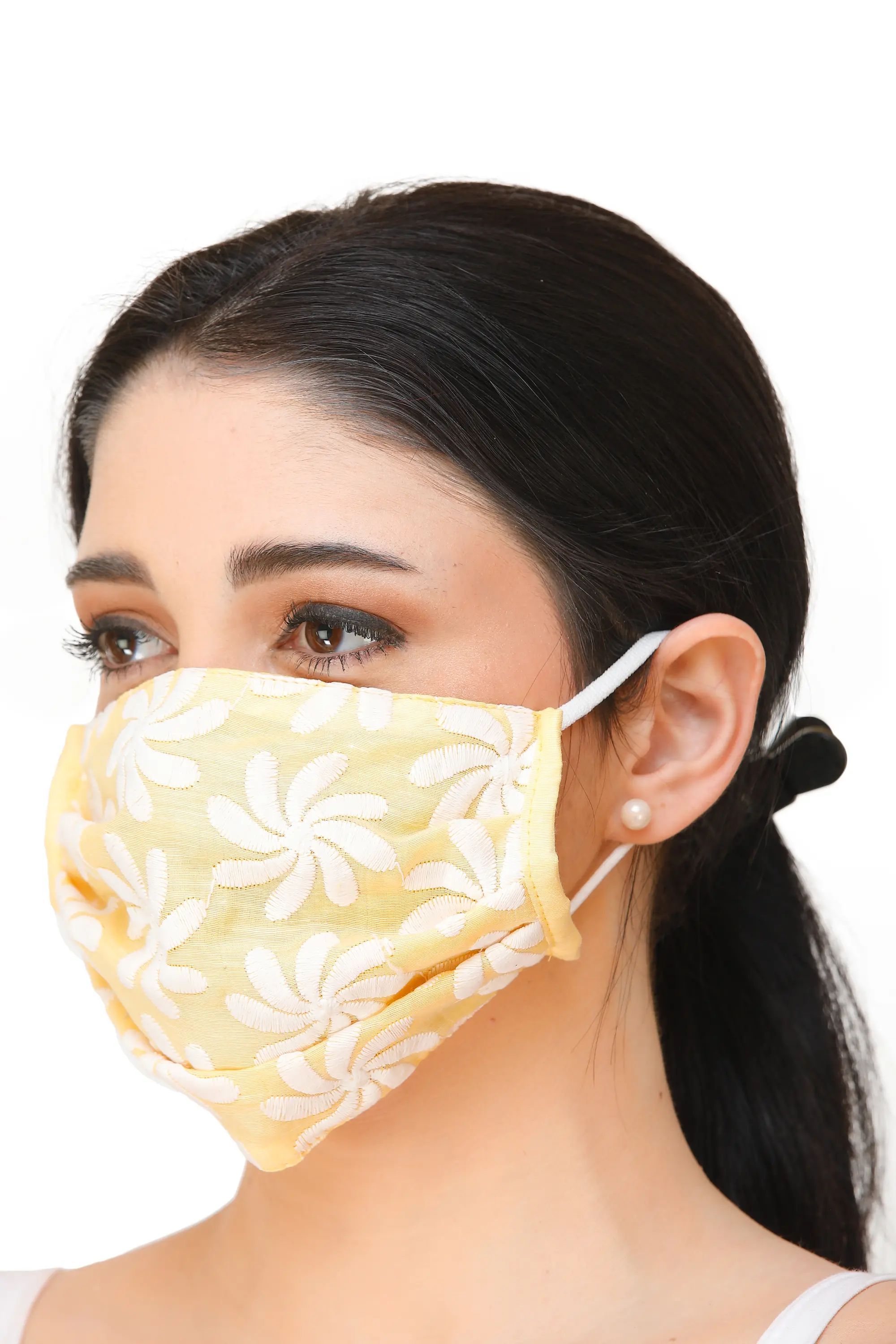 Enhance your protection with this mask that is a blend of functionality and style. Adorned with the beauty of ‘Lukhnavi Chikan Embroidery’, this mask transcends utility to become a statement of style. Crafted with a cotton backing, it ensures breathability without compromising safety. The ear loops provide a secure fit, embracing comfort and security. This mask reflects a commitment to both safety and aesthetic finess. In a world that demands resilience, let this mask be your shield, a symbol of safeguarding oneself with grace and embracing the artistry of protection. Wear it not just as a necessity, but as an embodiment of resilience and refined taste.