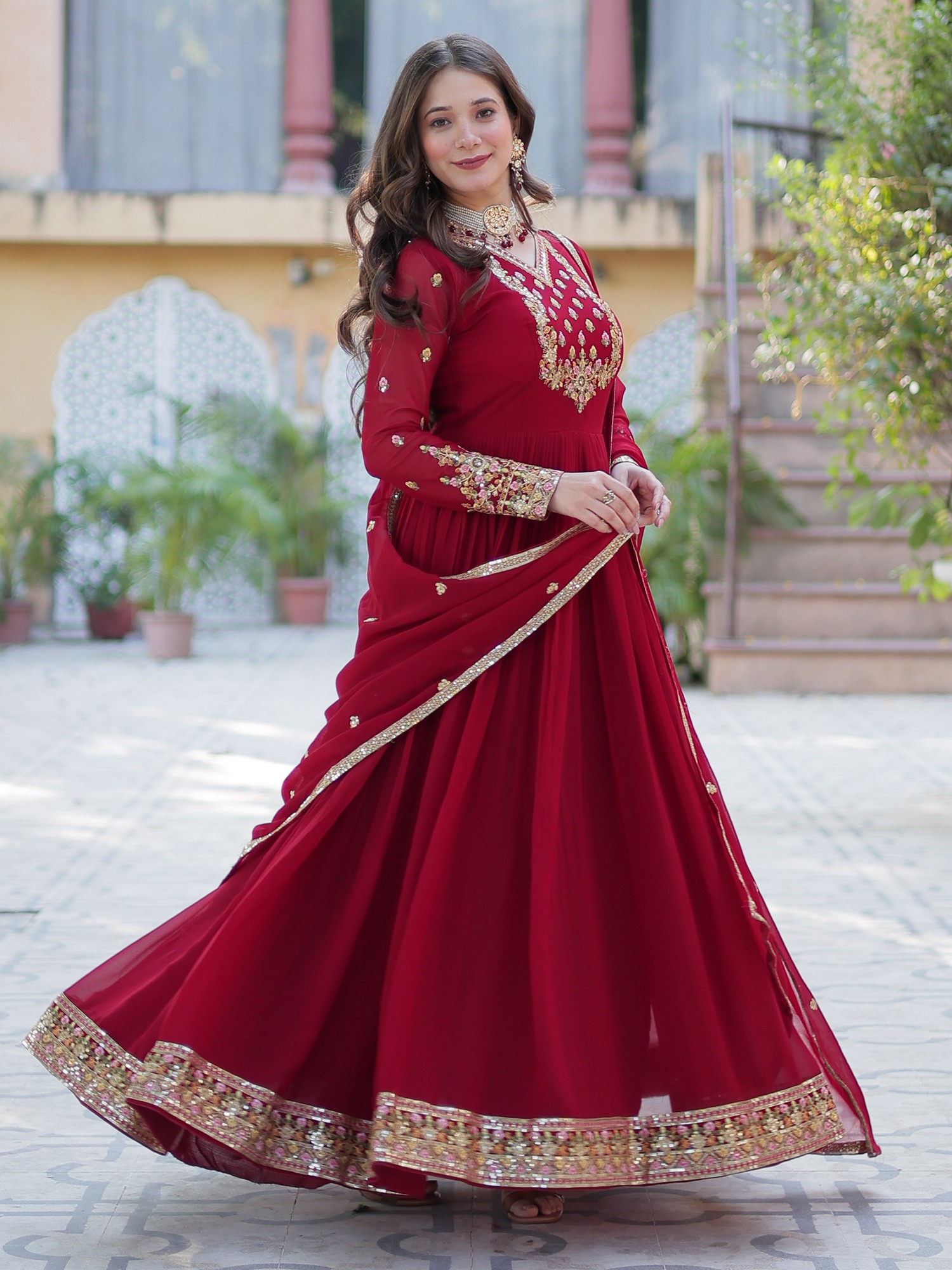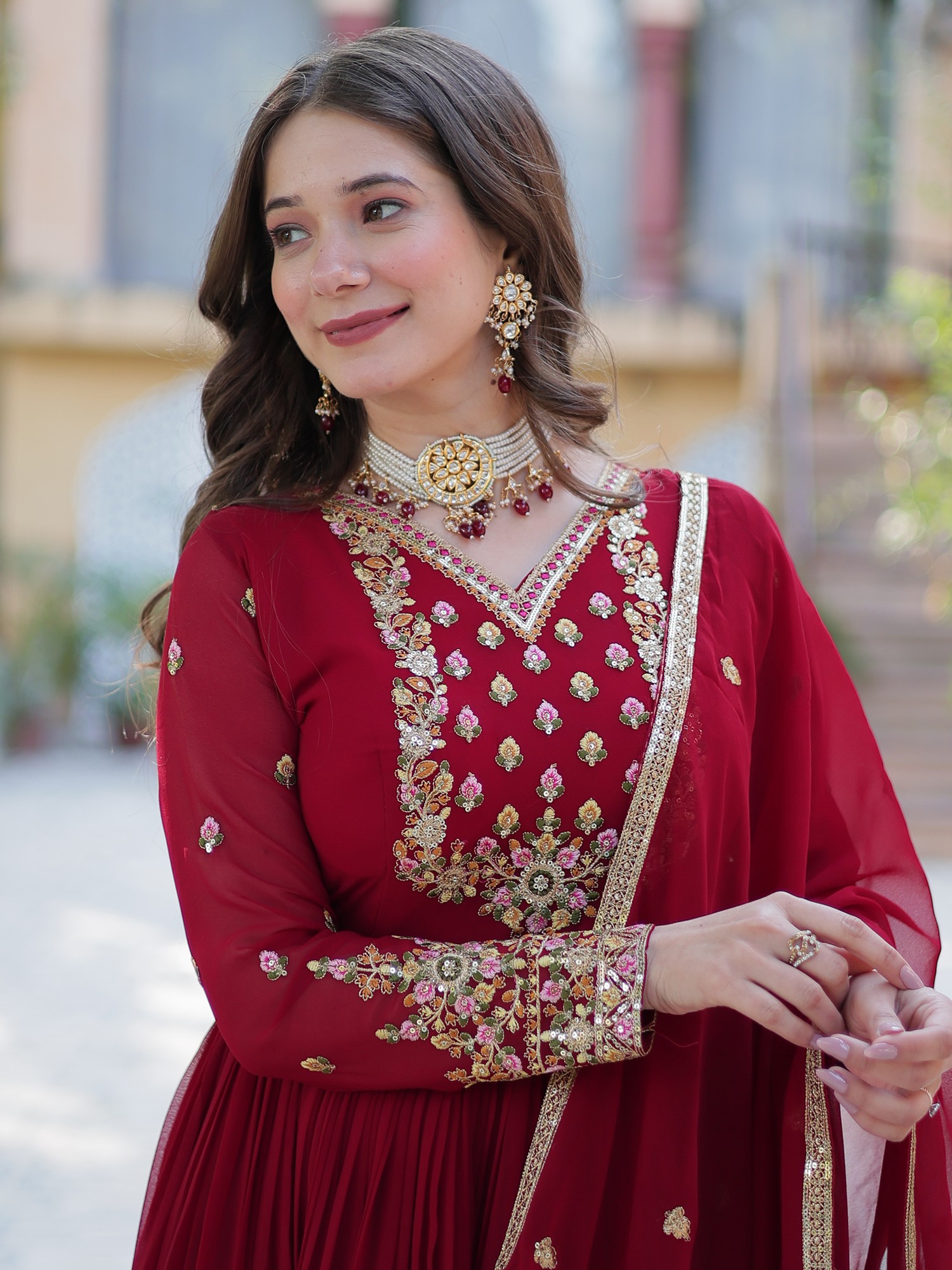 Faux Blooming Georgette Sequins Embroidered Gown With Dupatta Anarkali Style Ethnic Party Wear For Women