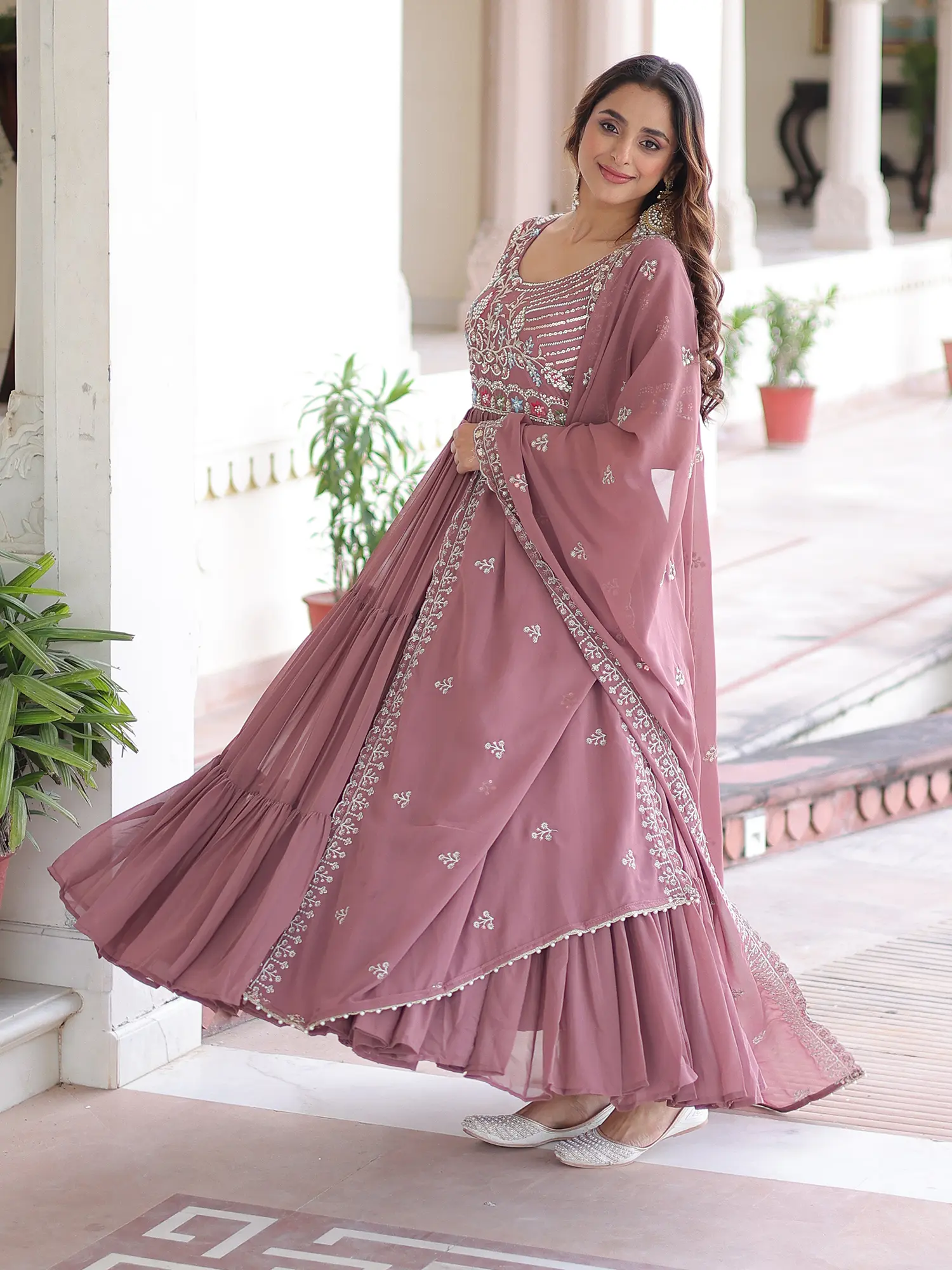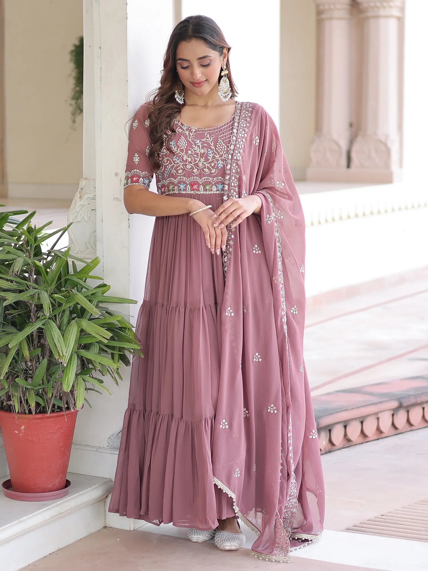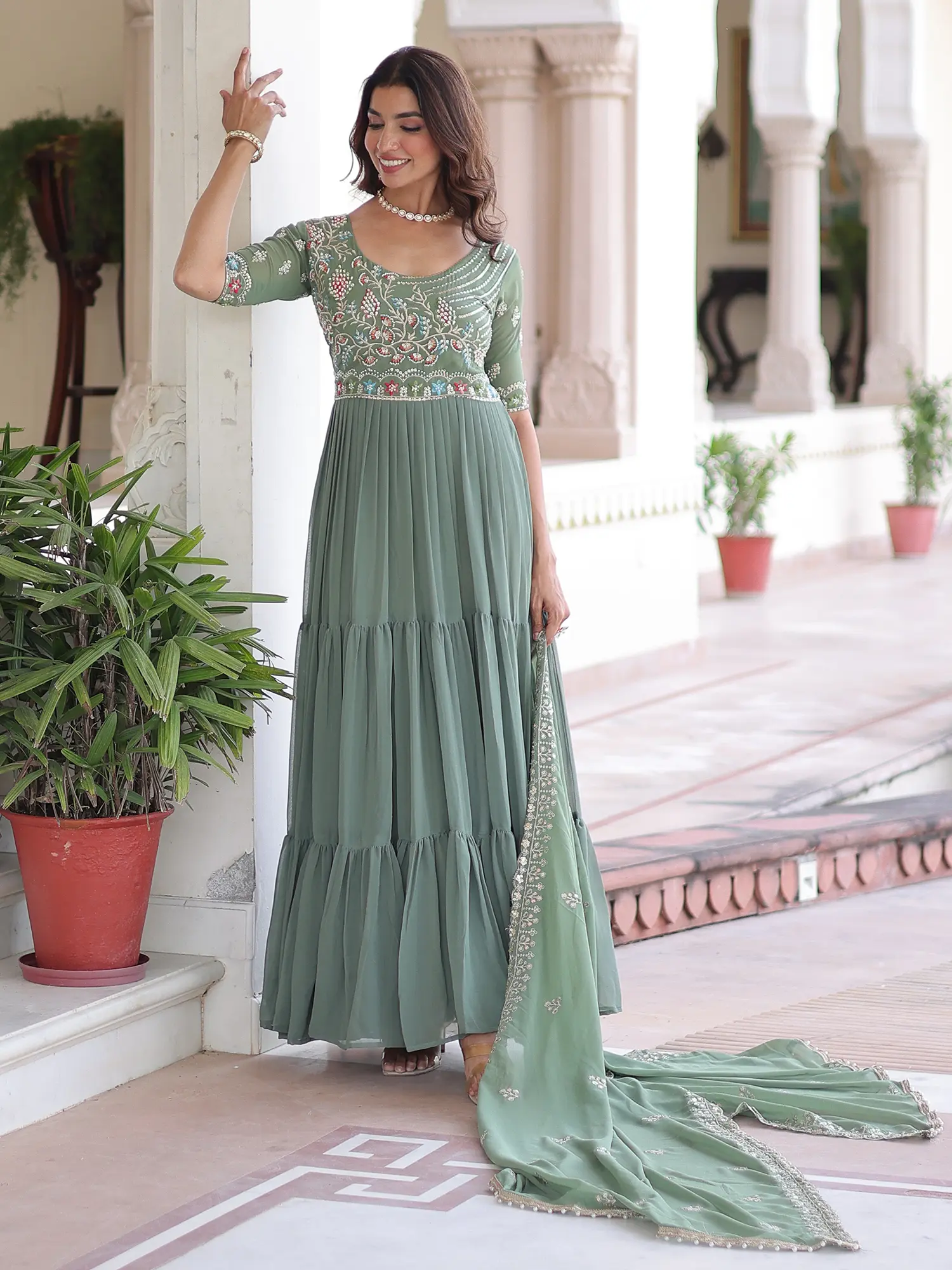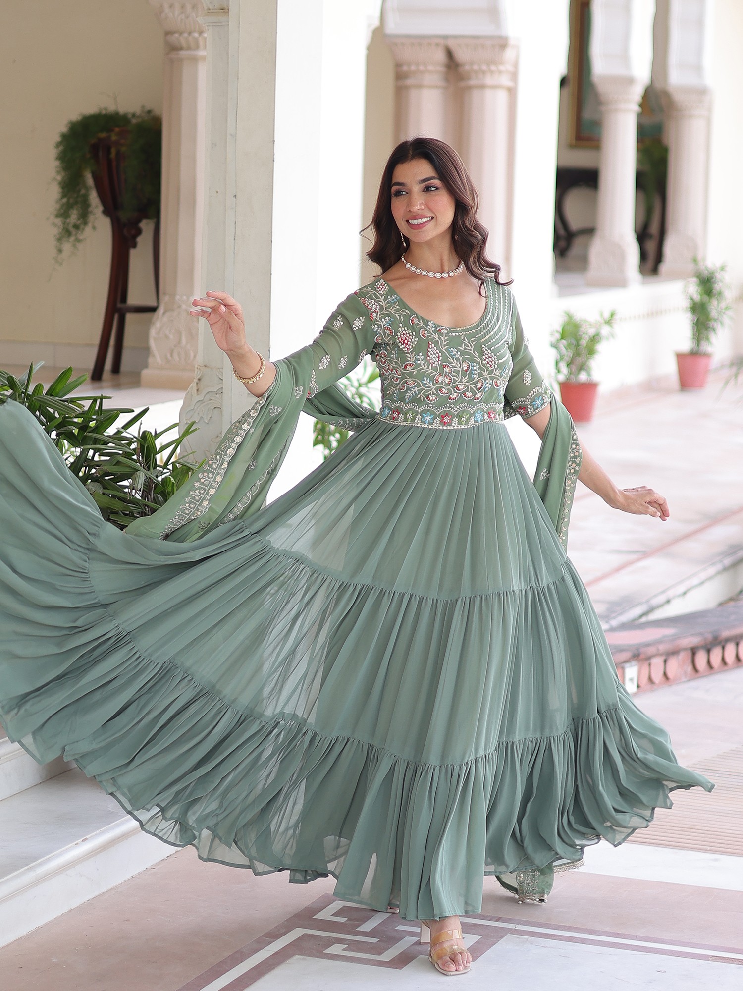 Heavy Embroidered Faux Georgette Designer Anarkali Gown Set with Dupatta