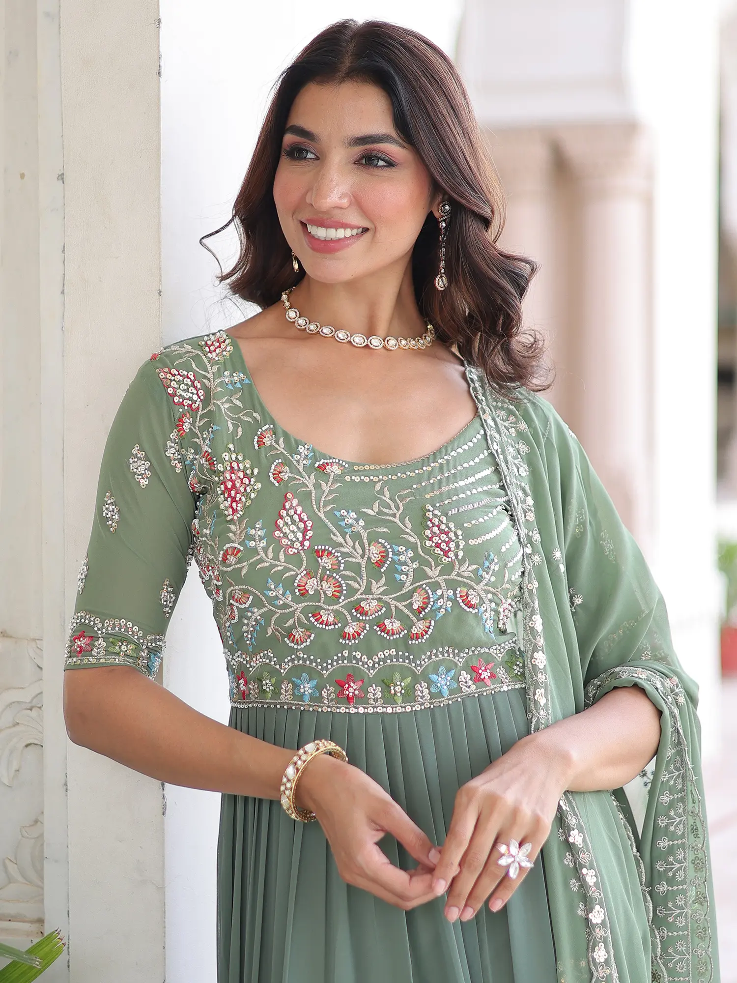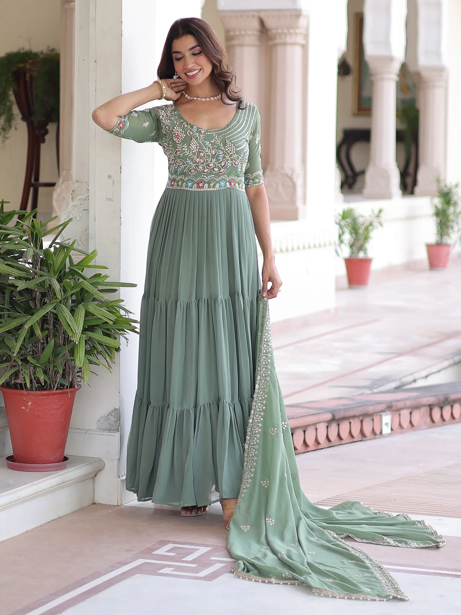 Heavy Embroidered Faux Georgette Designer Anarkali Gown Set with Dupatta