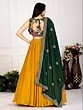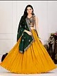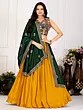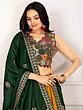 Bottle-Green Net Beads and Golden Thread Embroidery Lehenga Choli with Cutwork Dupatta