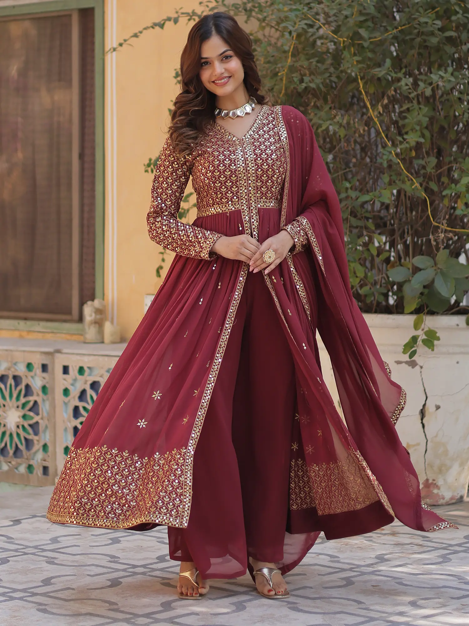 Sequins Embroidered Georgette Gown with Matching Dupatta - Festive Ensemble