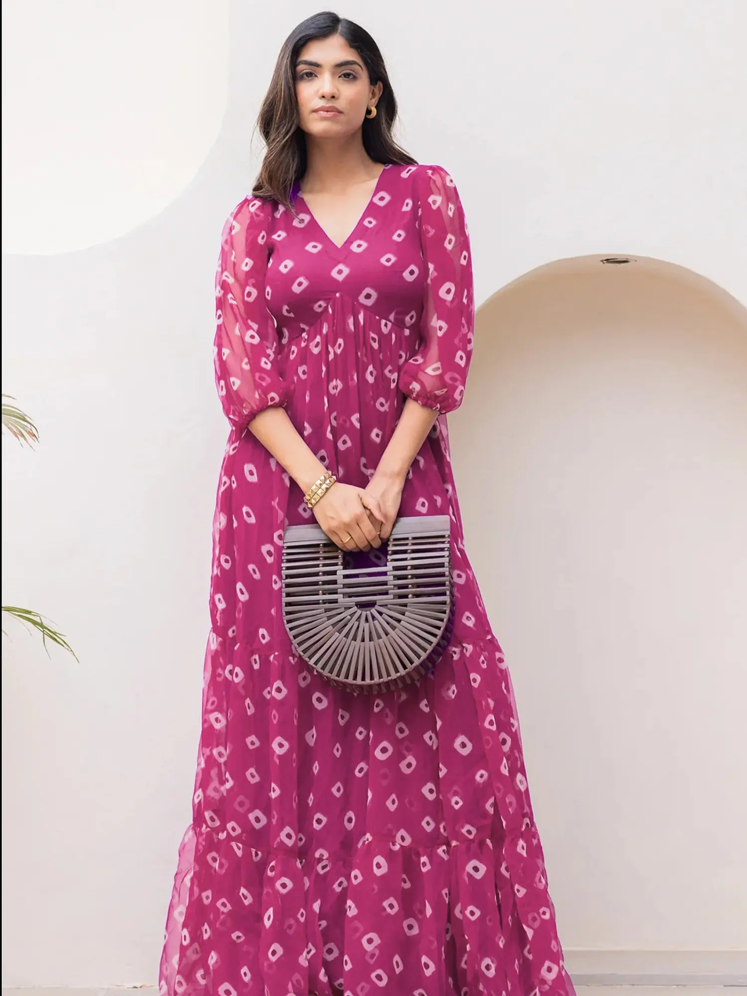 Rayon Printed Tiered Gown Long Flared Maxi Dress For Everyday Wear Shopping And Small Parties For Women