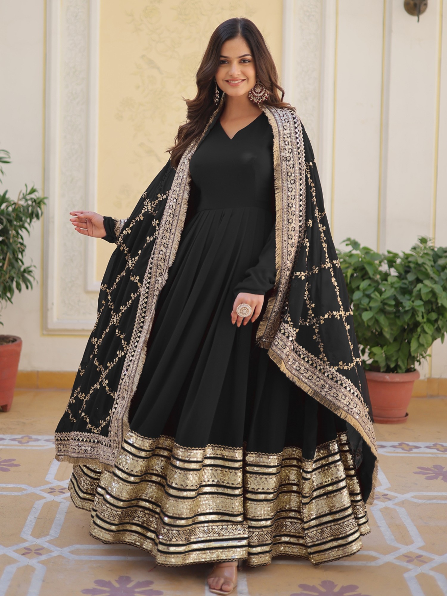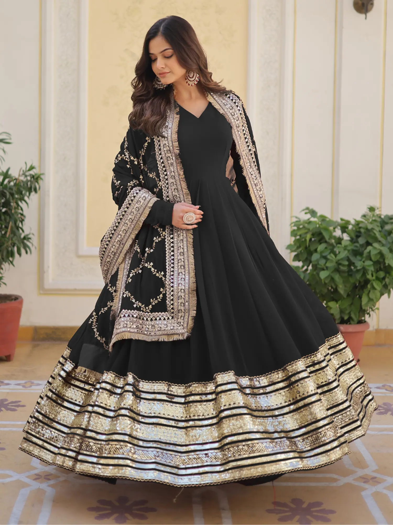 Sequins Embroidered Festive Wear Long Georgette Gown With Attractive Dupatta