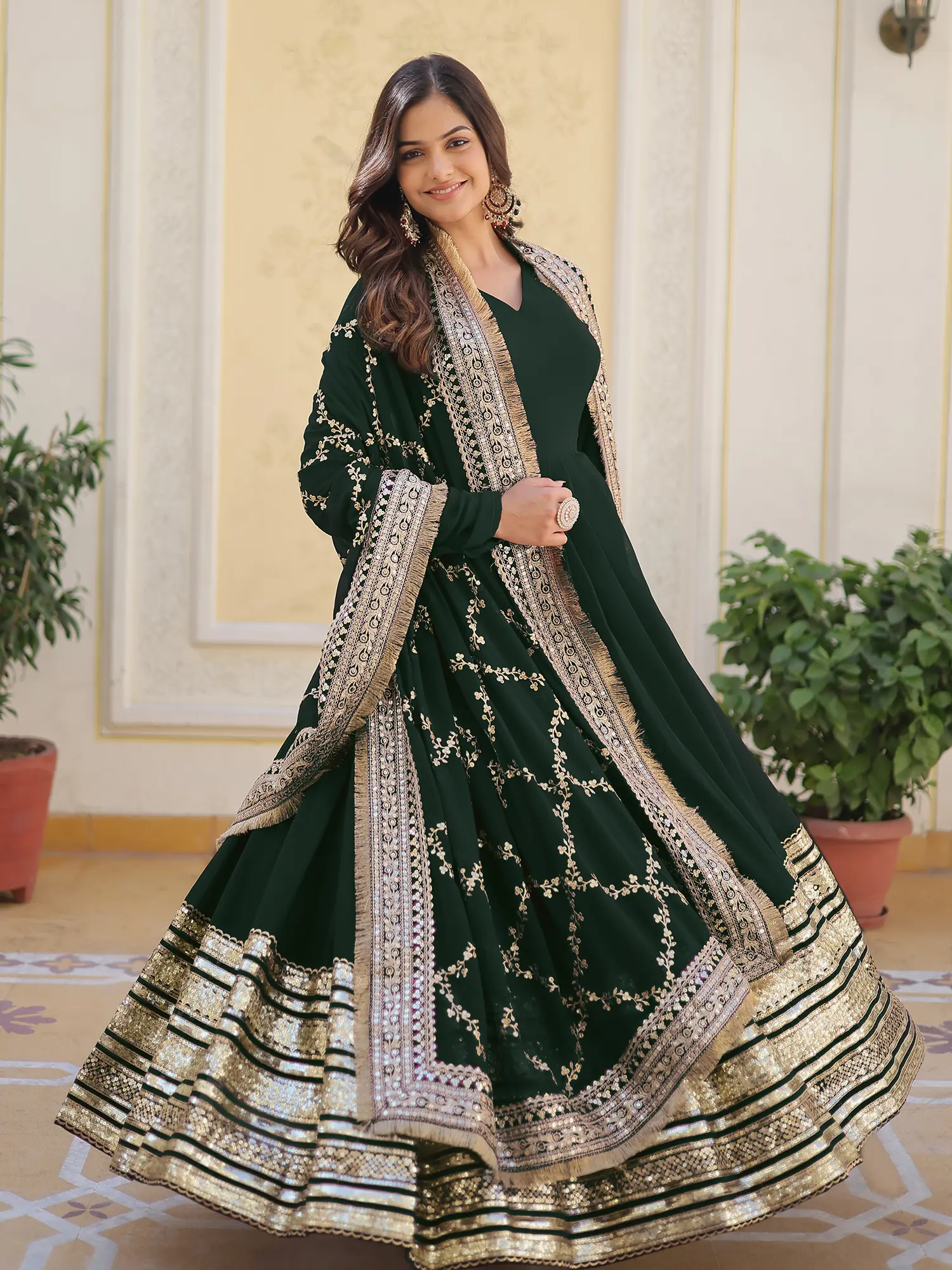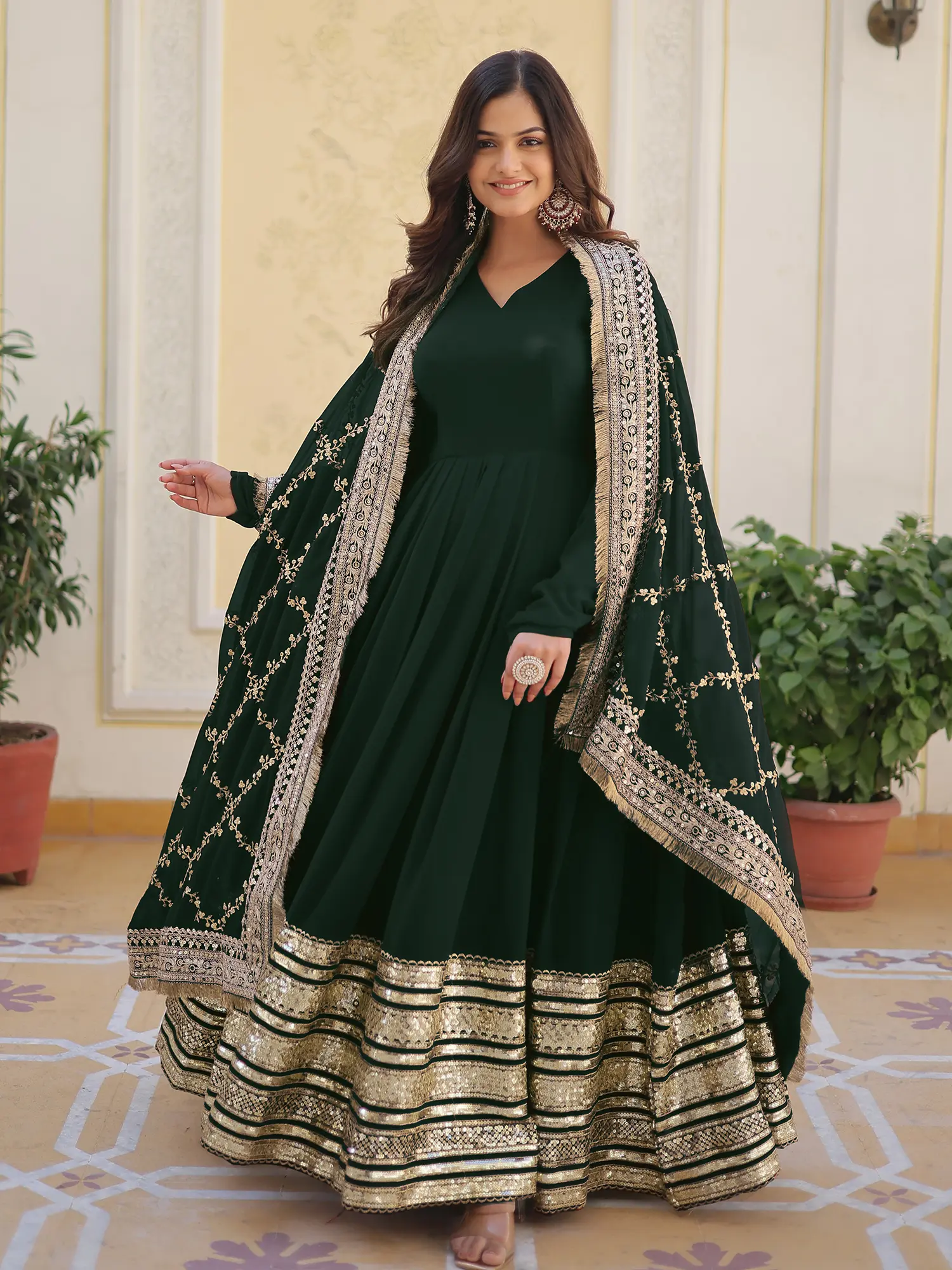 Festive Wear Georgette Fabric Sequins Design Gown With Dupatta