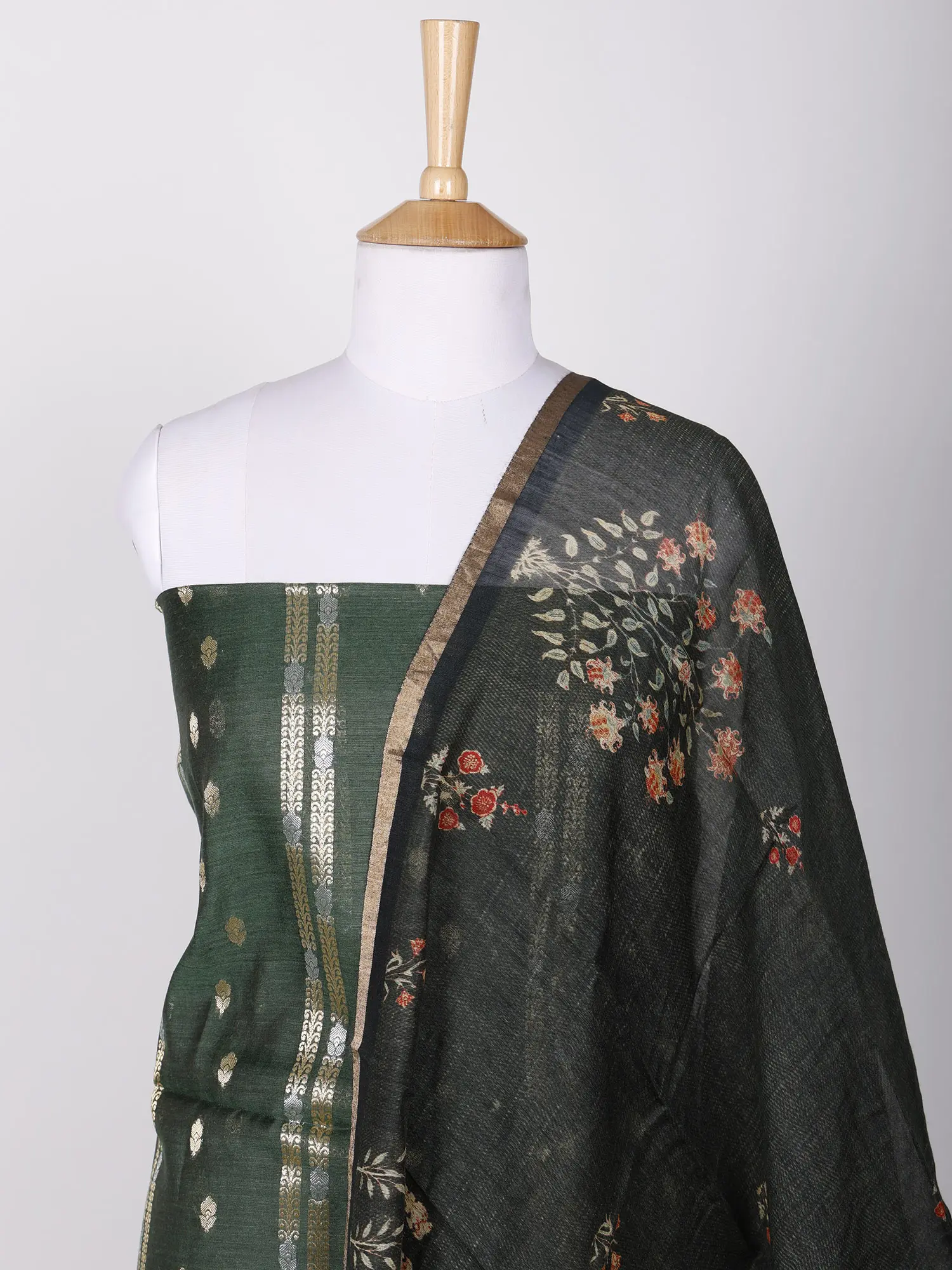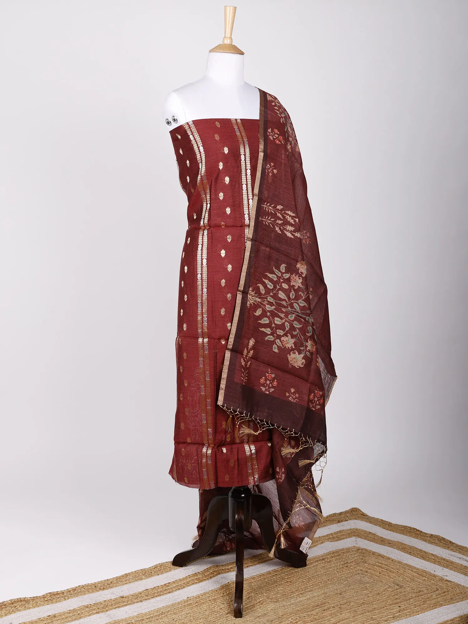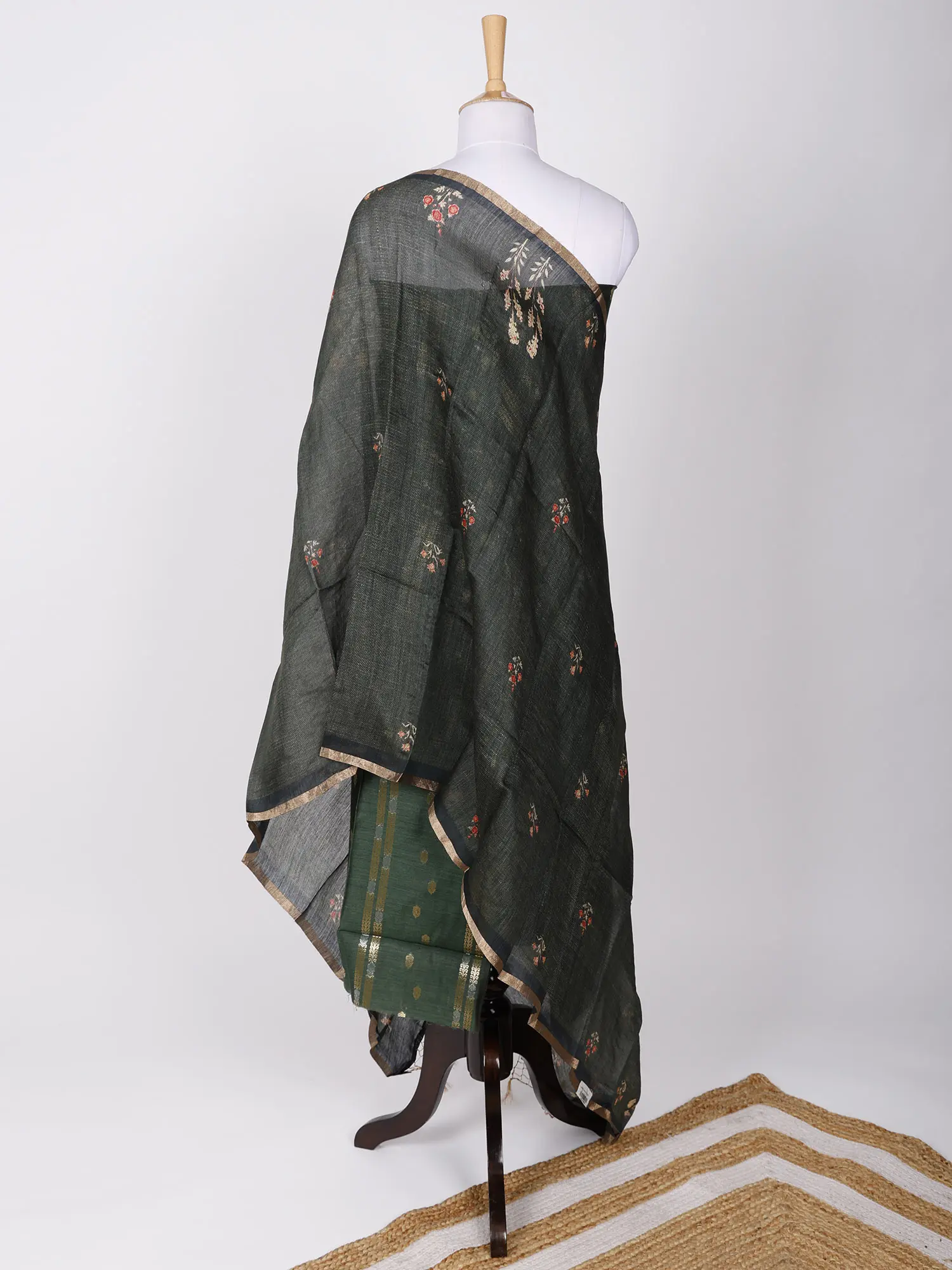 Banana-Grape Sari from Assam with Woven Bootis and Stripes