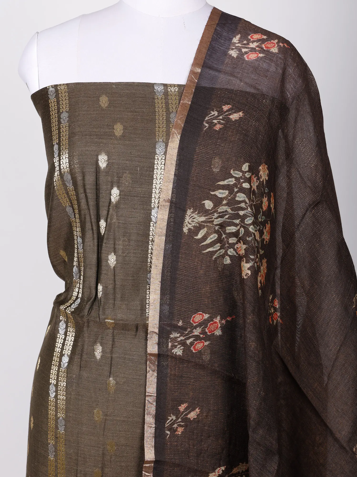 Hazelnut Sari from Assam with Woven Motifs on Anchal