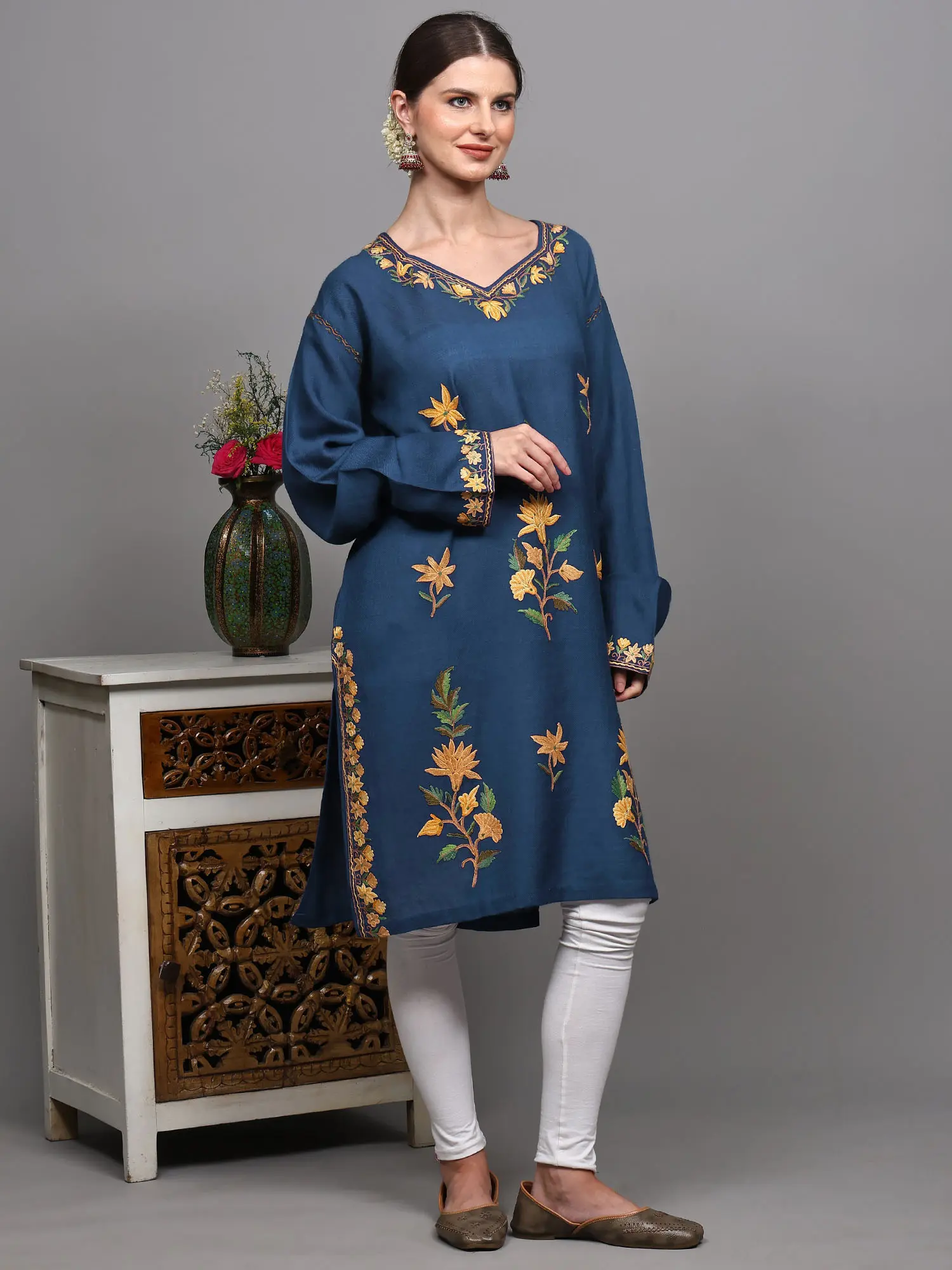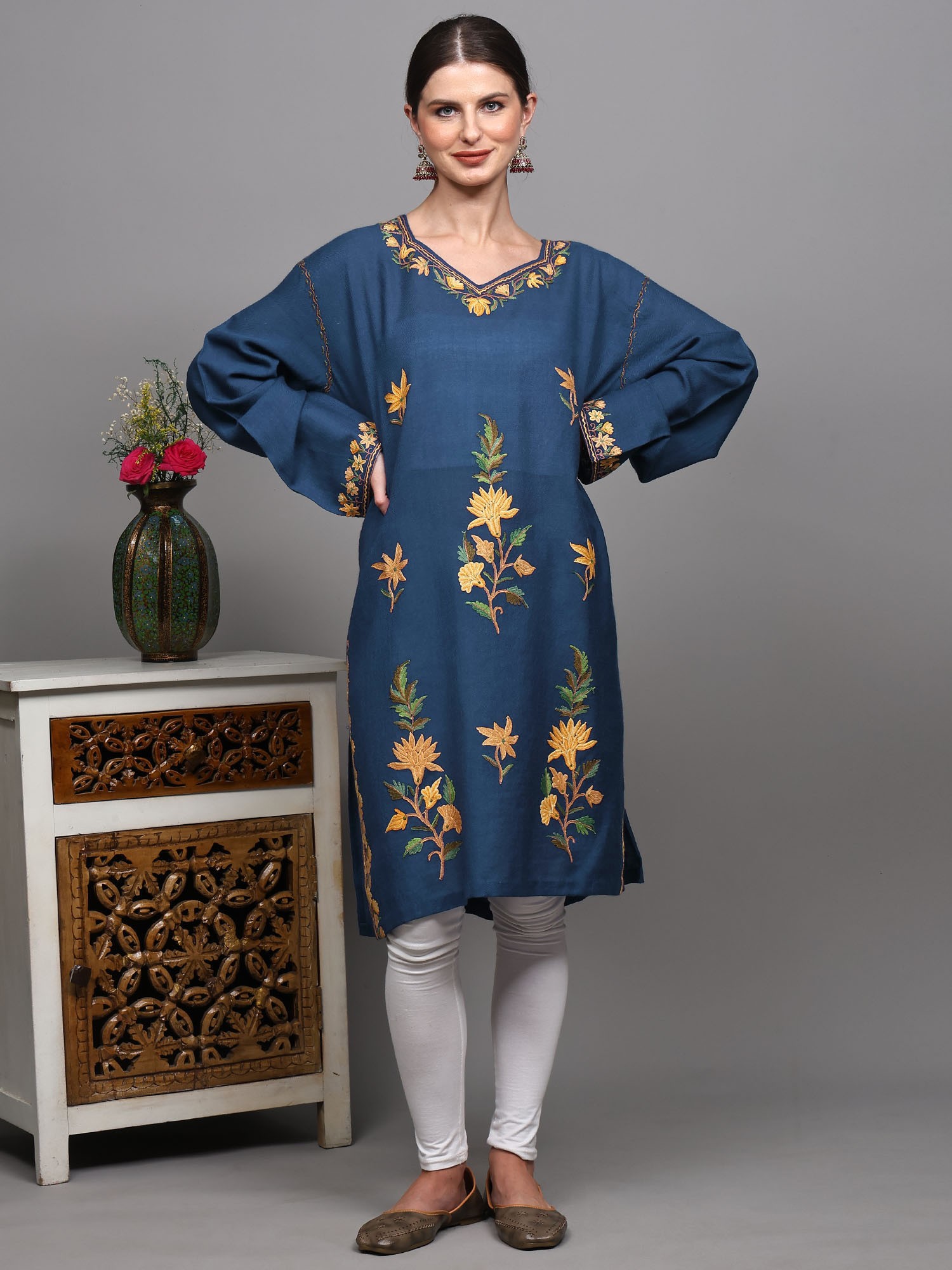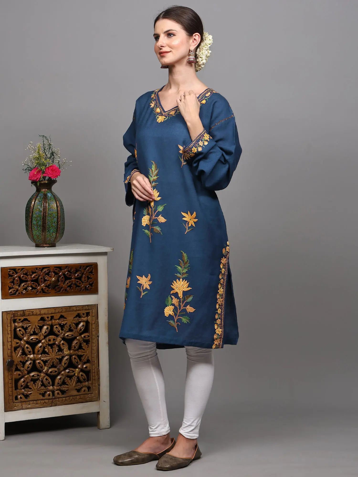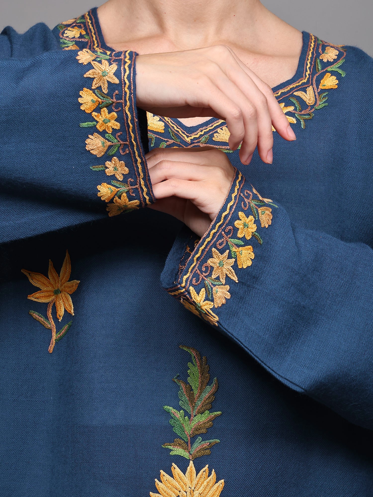 Pirate-Black Kashmir Phiran with Aari Embroidered Flowers and Paisleys