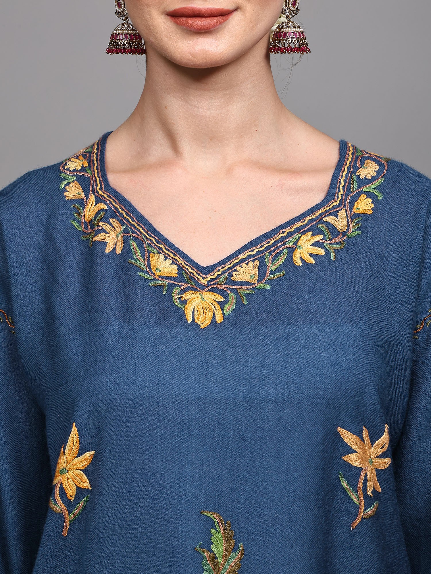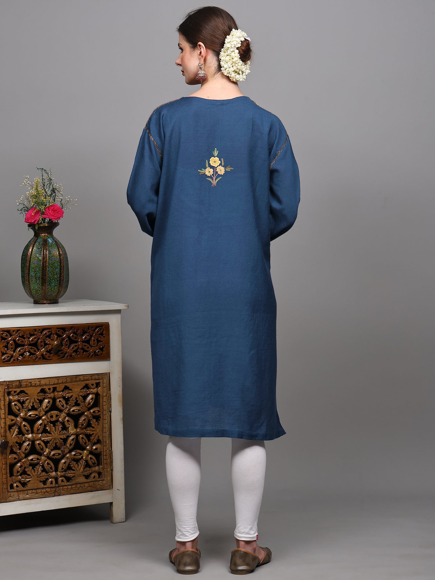 Caviar-Black Kashmiri Phiran with Aari Floral-Embroidery by Hand