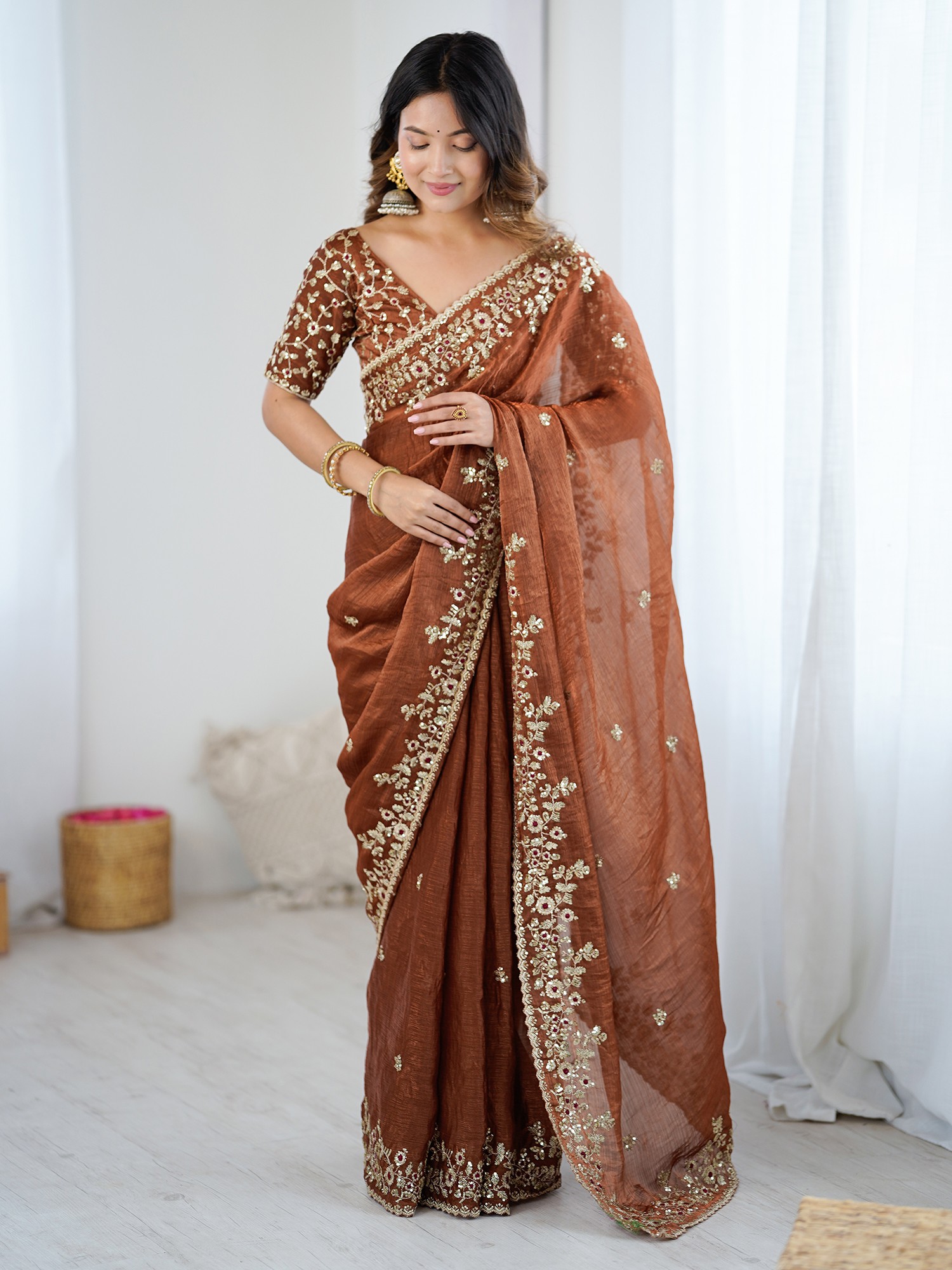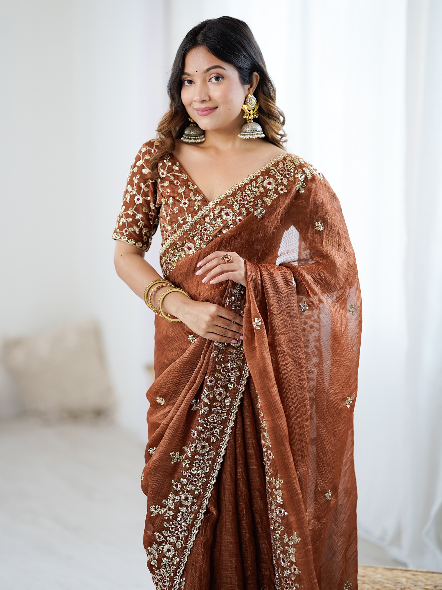 Fendy Chiffon Saree With Sequin Embroidery Work Elegant Traditional Party Wear Saree For Special Occasions