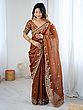 Woven Zari Kora Silk Saree With Sequins Embroidery Highlighted Zardozi Handwork For Wedding Festive Occasion For Women
