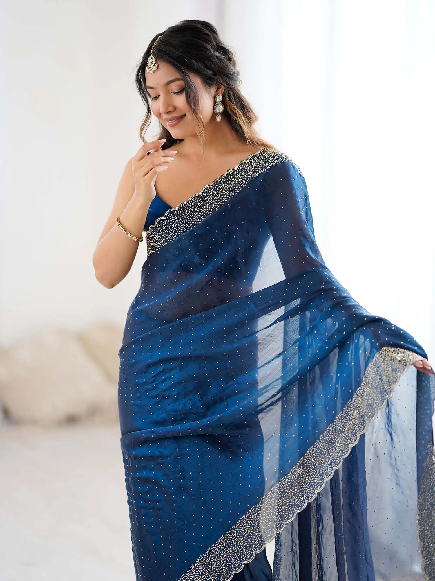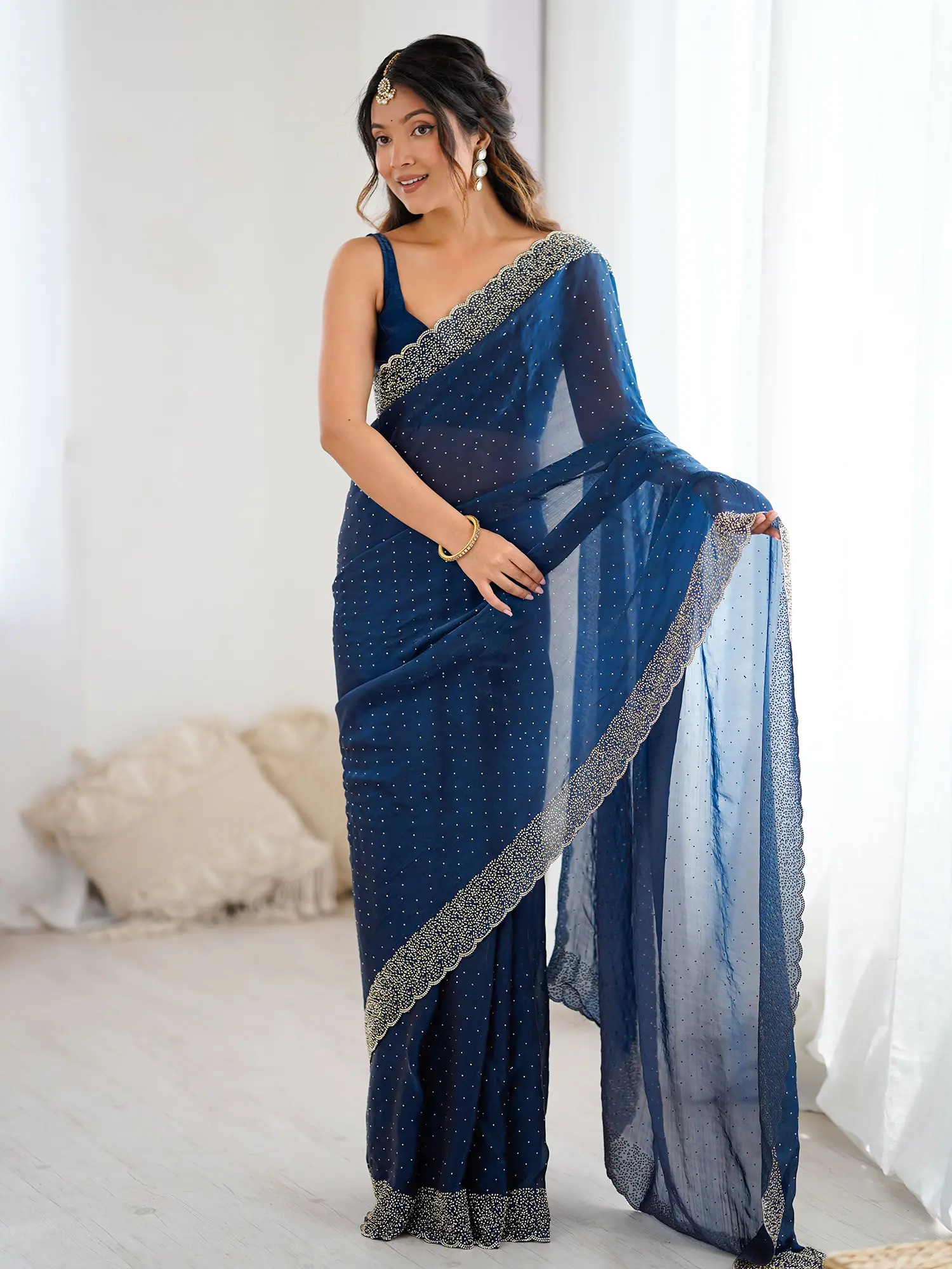 Stunning Shaded Chinon Saree Featuring Premium Double Color Swarovski Embroidery And Elegant Subtle Piping Detailing