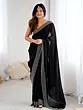Women Luxurious Fendi Satin Silk Two Ton Shaded Saree With Elaborate Heavy Hand Work Black Zircon Border