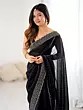Malai Crepe Silk Saree Designer Printed Black Abstract Motifs Vibrant Contrast For Party Festive Reception Wear