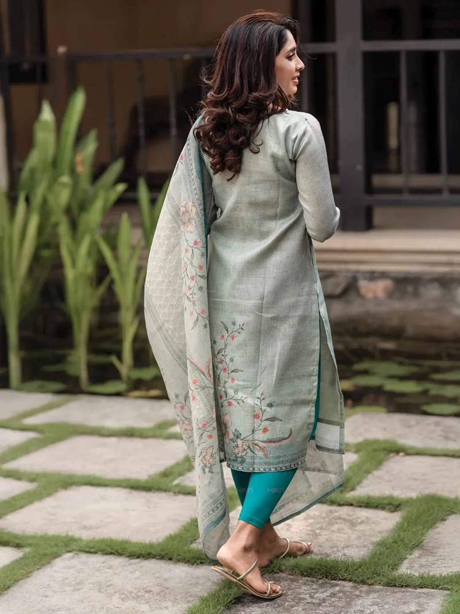 The silhouette features a flattering cut designed for comfort and style, adorned with a captivating floral motif that evokes the beauty of a blossoming garden. The accompanying dupatta is a masterpiece in itself, featuring a coordinating print and a subtly contrasting border that adds a touch of refined depth. This thoughtful combination ensures a harmonious and visually appealing presentation that is both modern and enduring.