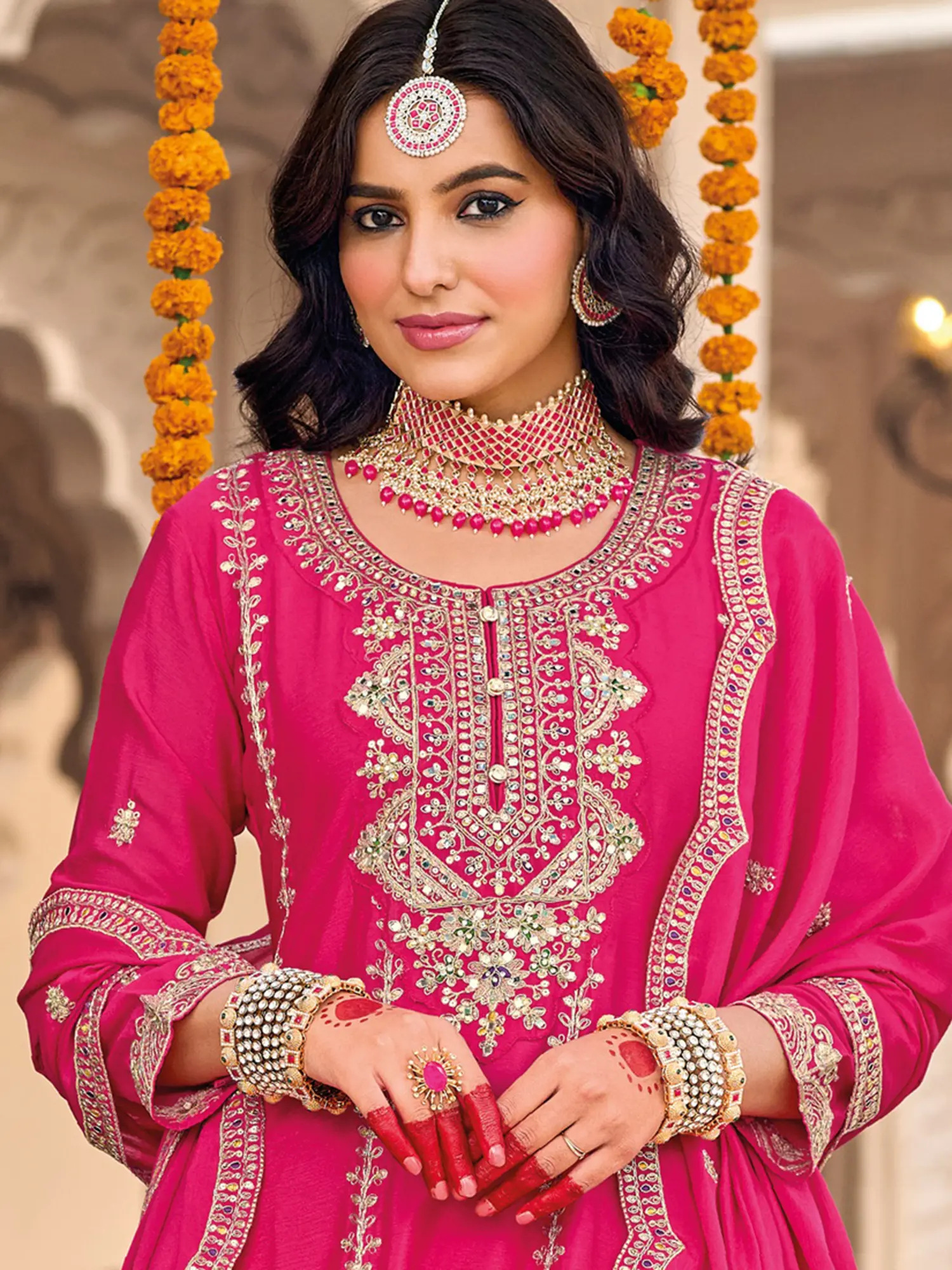 Step into the spotlight with a creation that captures the very essence of celebration. You'll command attention and radiate confidence, whether you're gracing a grand wedding or a cherished family gathering. This ensemble is designed to make every moment feel extraordinary.