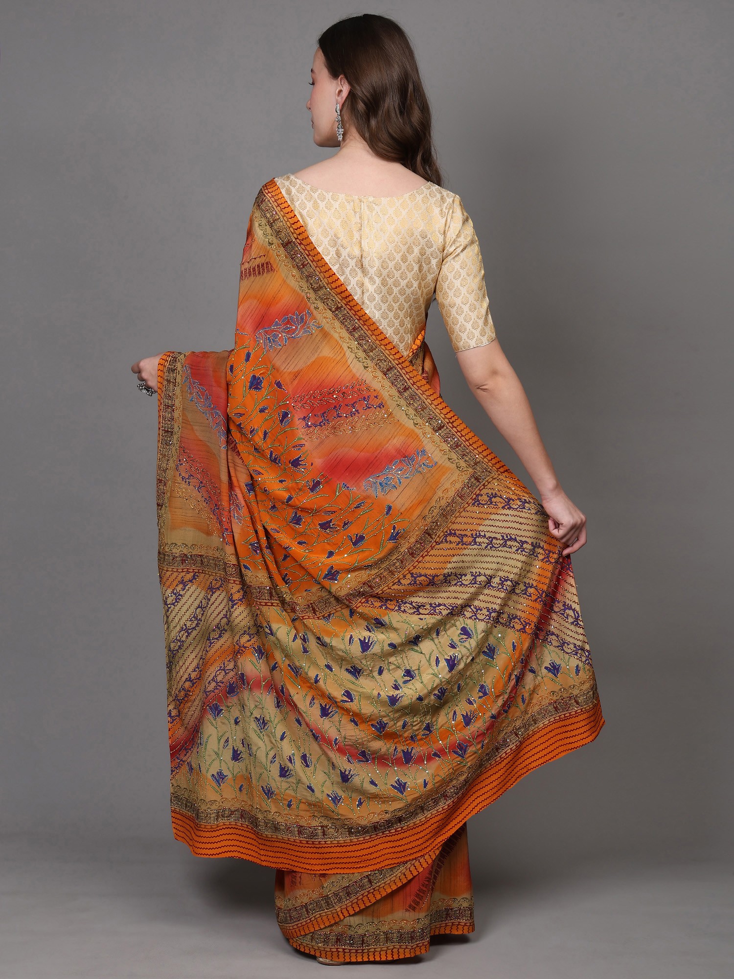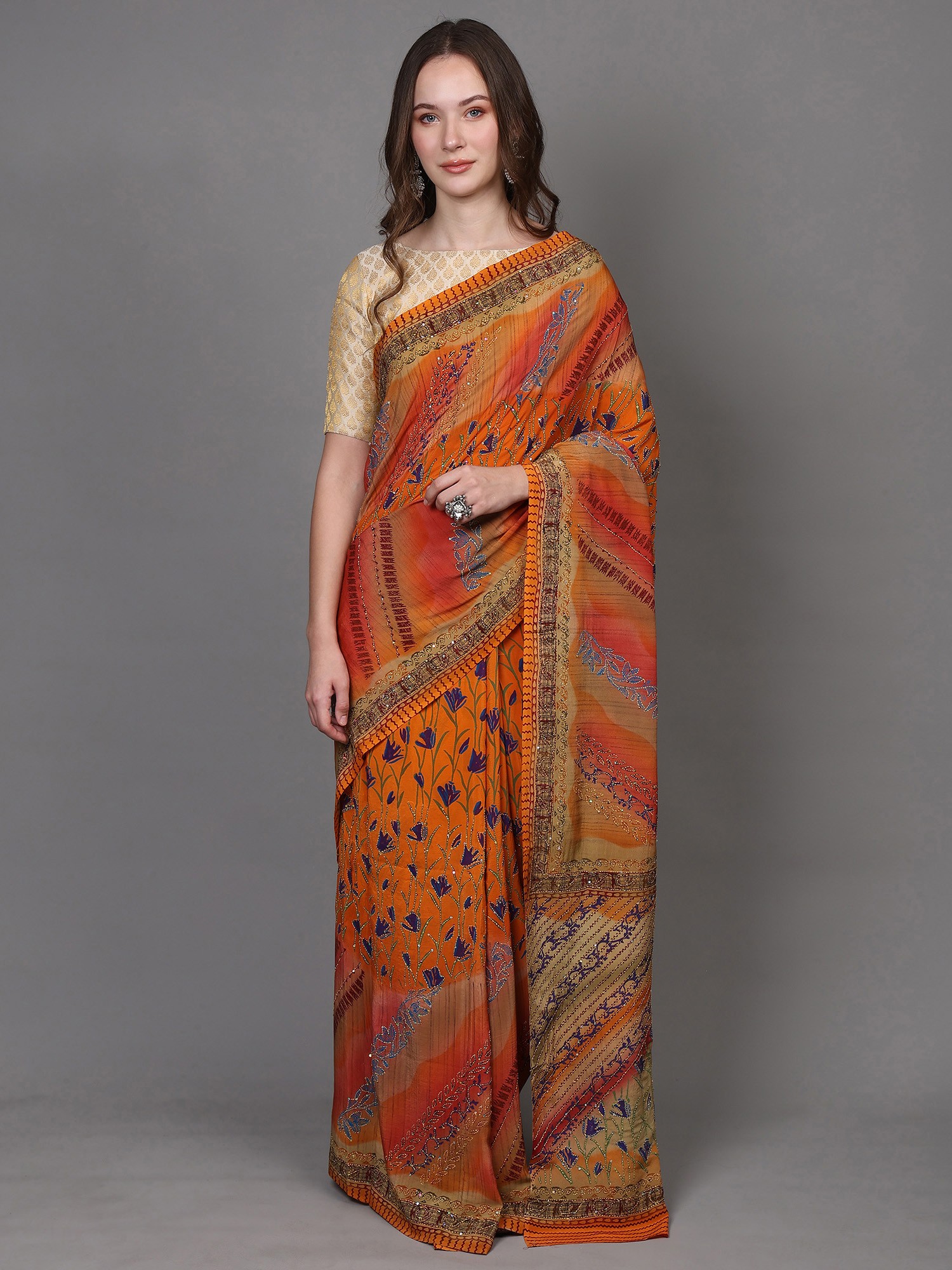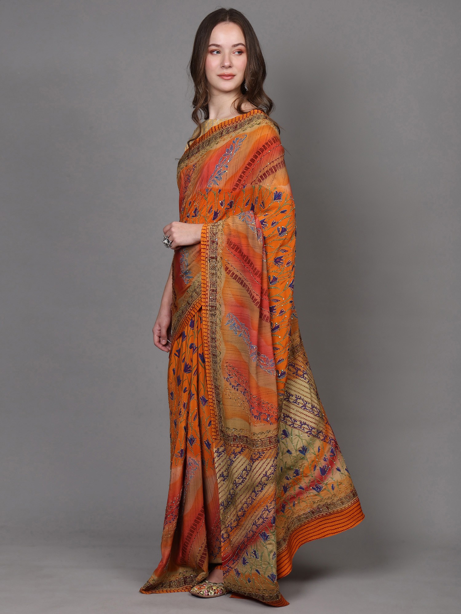 Multicolor Digital Print Designer Party Wear Japan Crepe Saree With Blouse