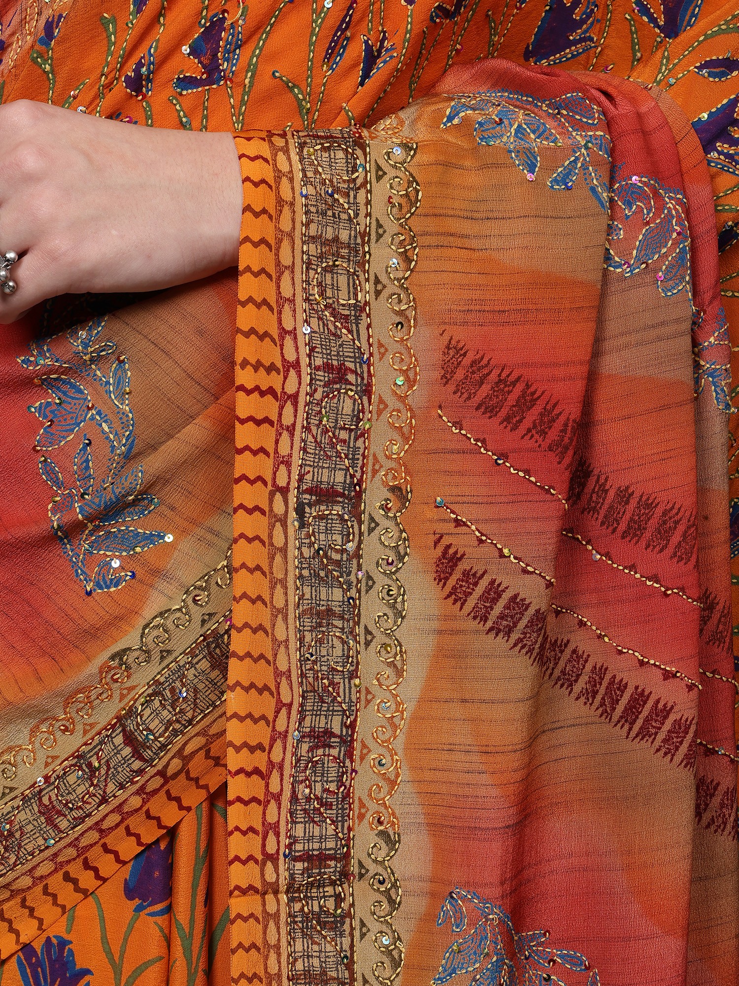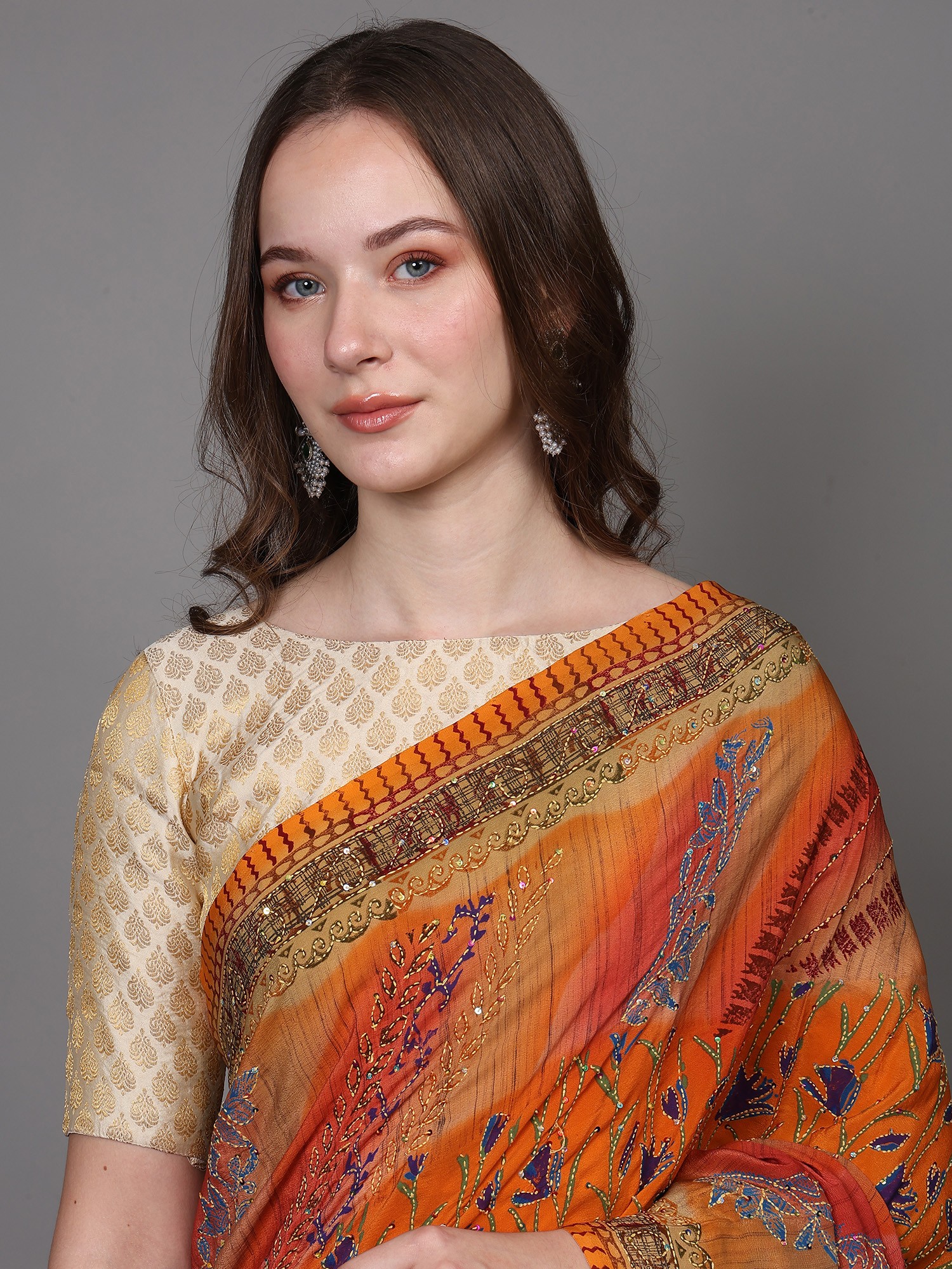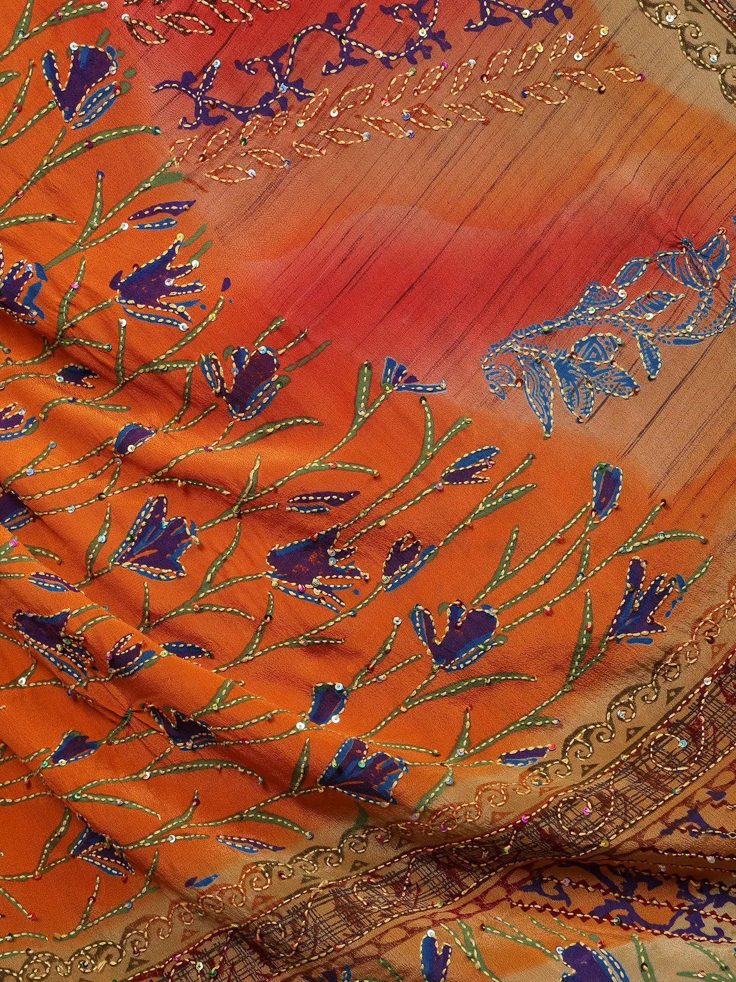 Multicolor Digital Print Designer Party Wear Japan Crepe Saree With Blouse