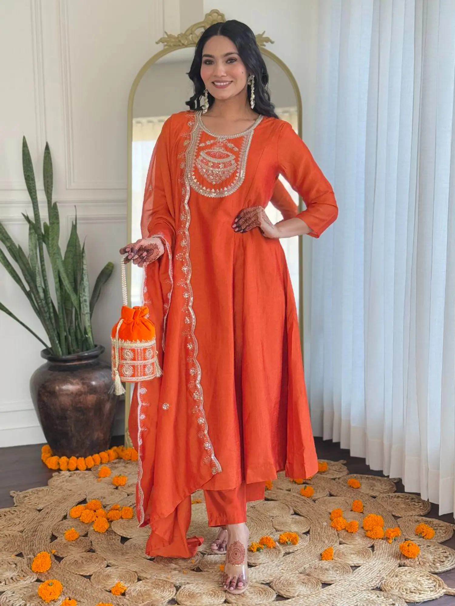 Long Trouser Salwar-Kameez Suit with Heavy Embroidery