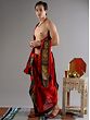 Measuring on both your index fingers, tie two knots near the navel. The knots should neither be too tight nor too loose on your waist. Now the cloth is divided into two sections; left and right.
