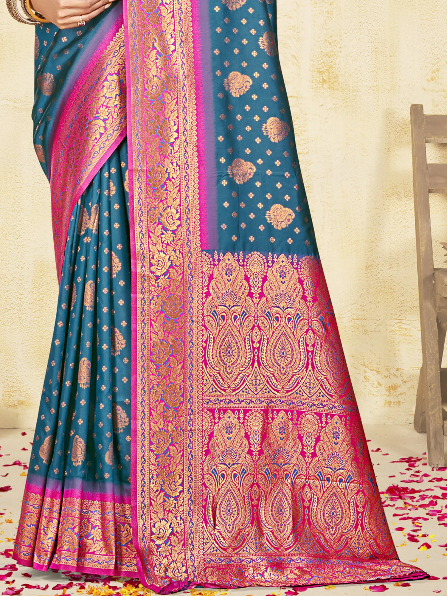Pale-Rosette Georgette Saree with Paisleys Aari Embroidery on Border and Pallu from Kashmir