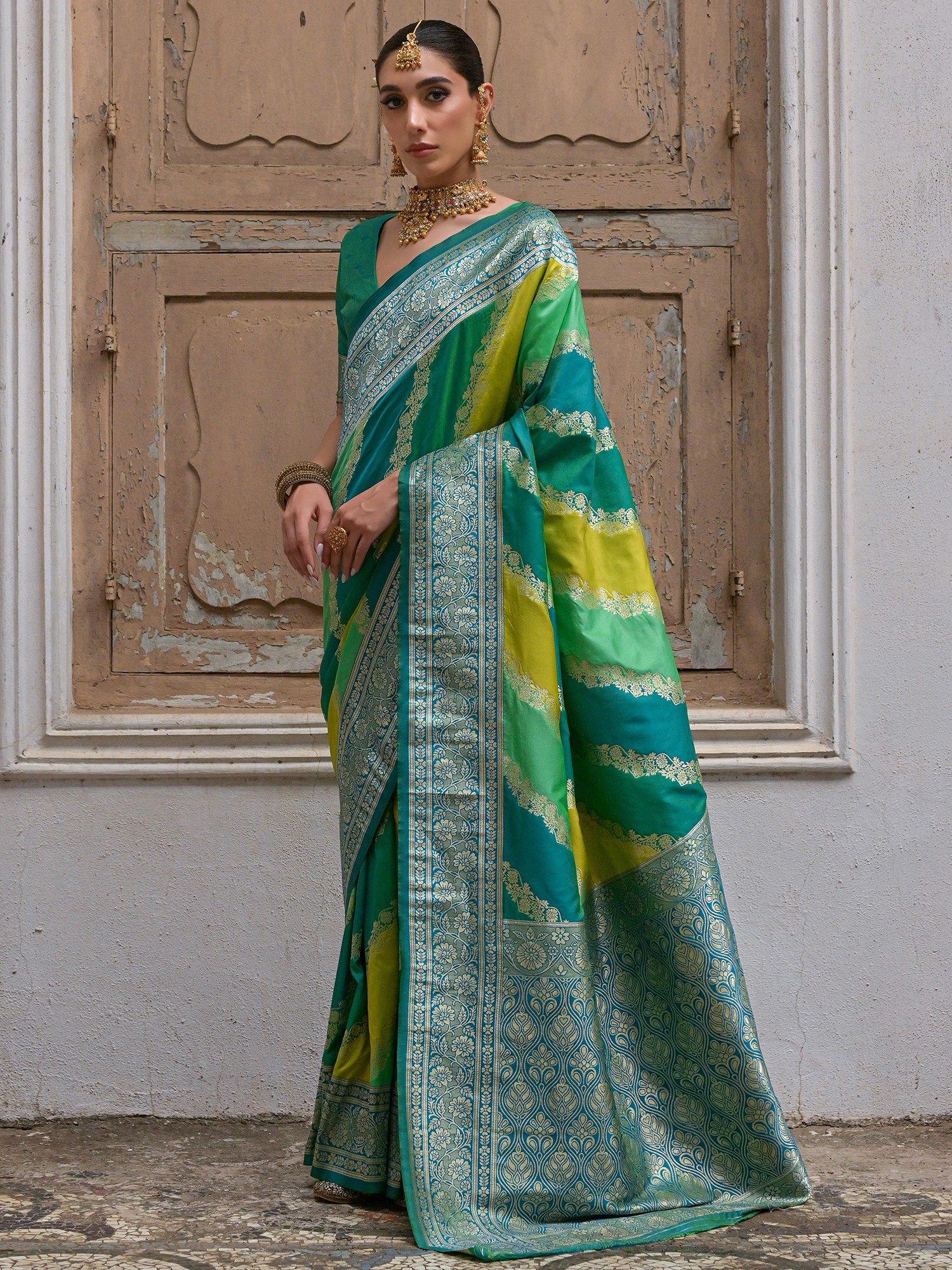 Woven Floral Motifs Attractive Silk Saree With Lotus Flower Tassels Pallu