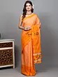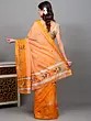 Amber-Yellow Block Printed Cotton Saree with Zari Border and Multi Stripe Pallu from Tamil Nadu