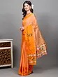 Cotton Saree with Block Printed Floral Motifs and Zari Border from Tamil Nadu