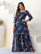 Georgette Digital Print With Hand Work Kurti Sharara Set With Chiffon Tassels Dupatta