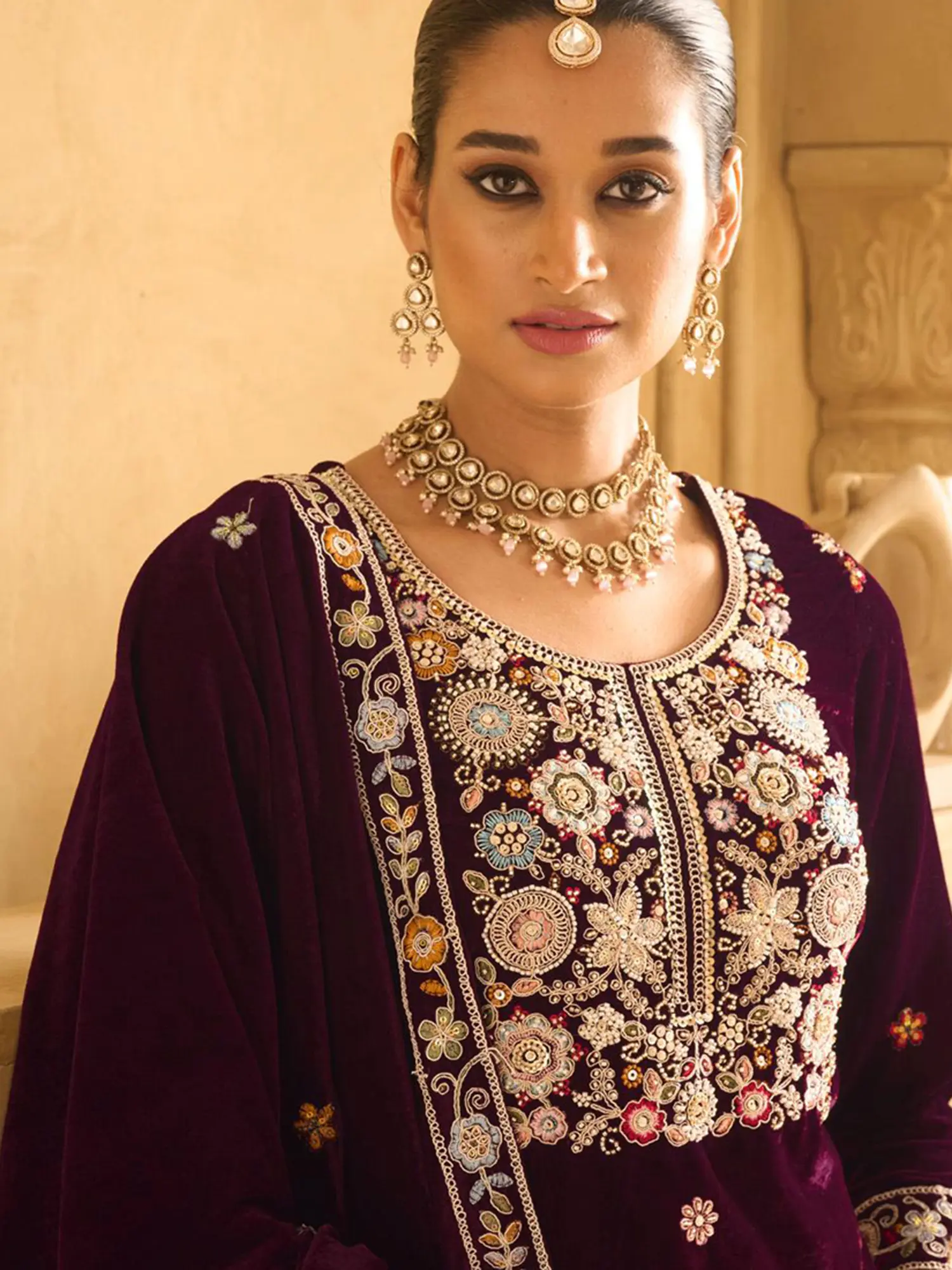 Elderberry Floral Aari Embroidered Salwar Kameez Suit with Dupatta