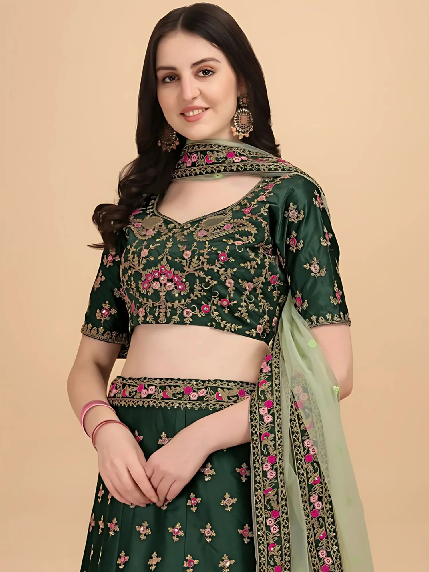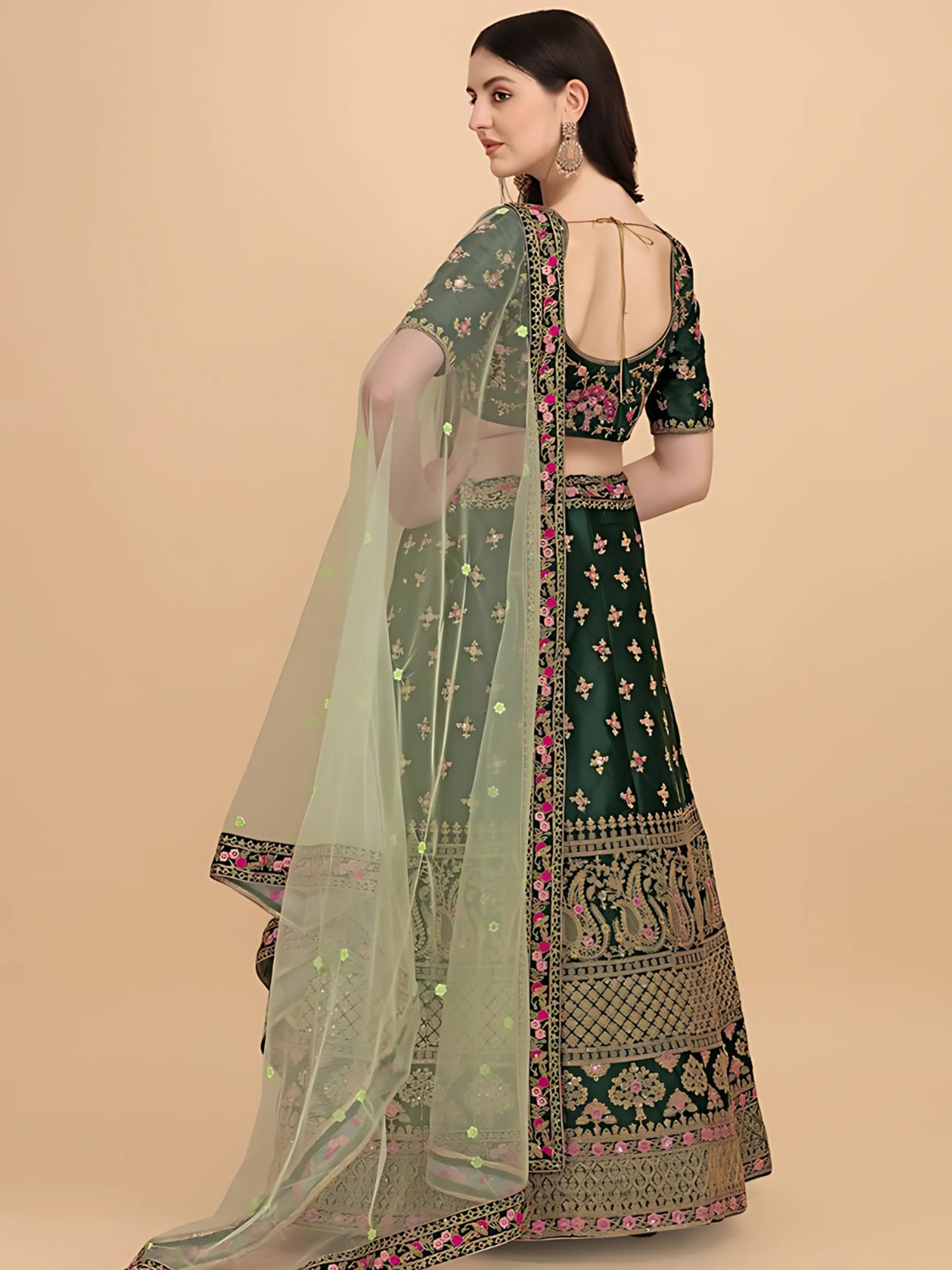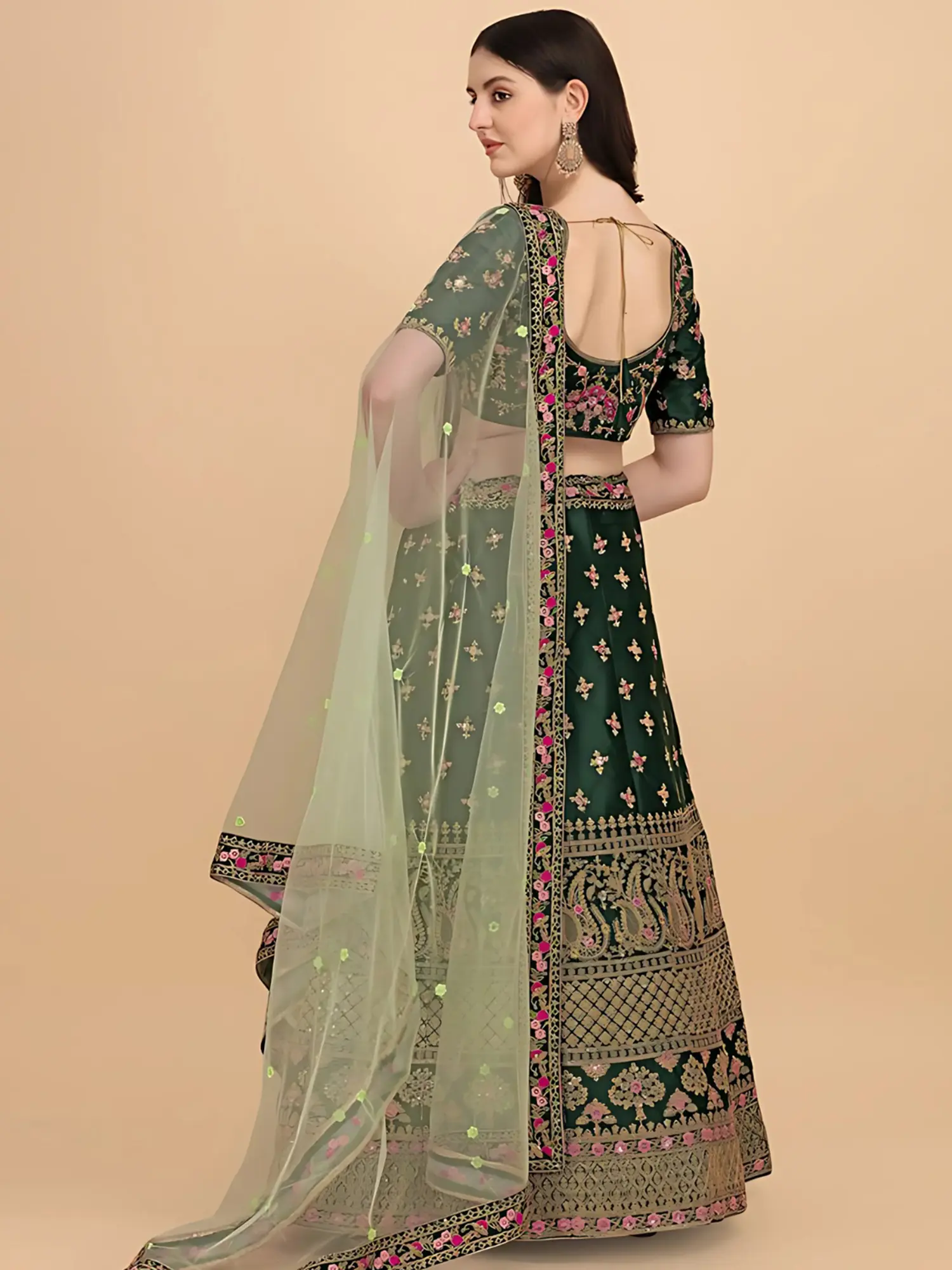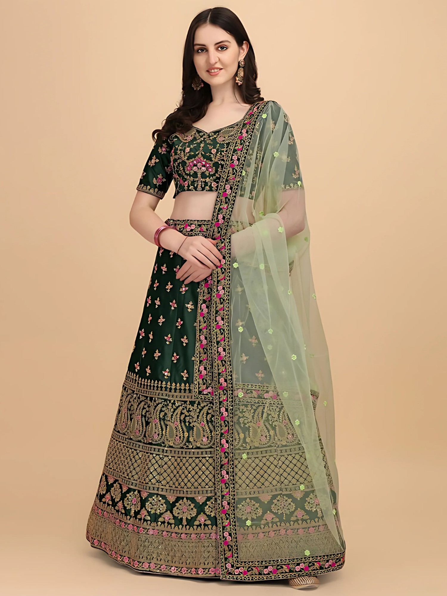 Stunning Floral Embroidery And Sequins Work Net Lehenga Choli With Matching Dupatta