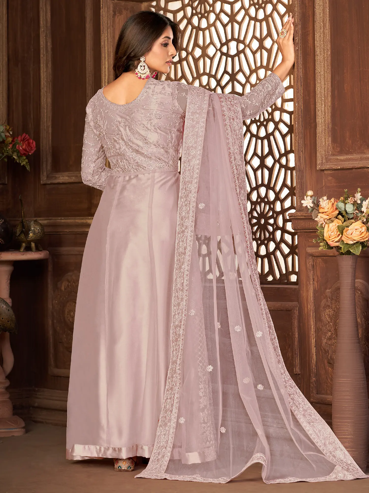 Peach-Blossom Anarkali Suit with Antique Beadwork and Sequins