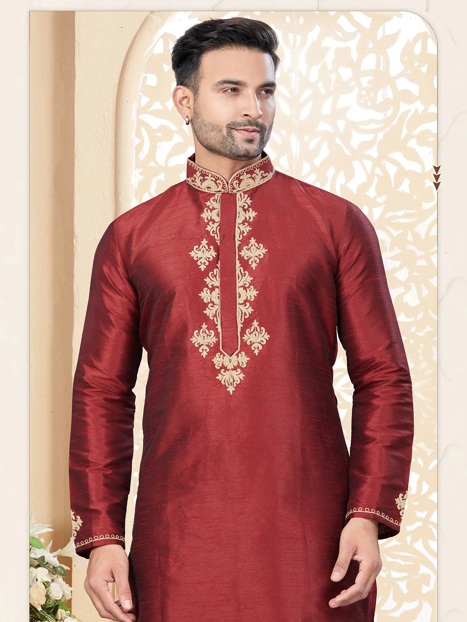 Kurta Pajama with Woven Checks and Embroidery on Neck