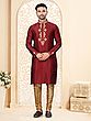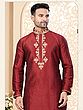 Plain Kurta Pajama Set with Zigzag Weave in Self and Embroidery on Neck