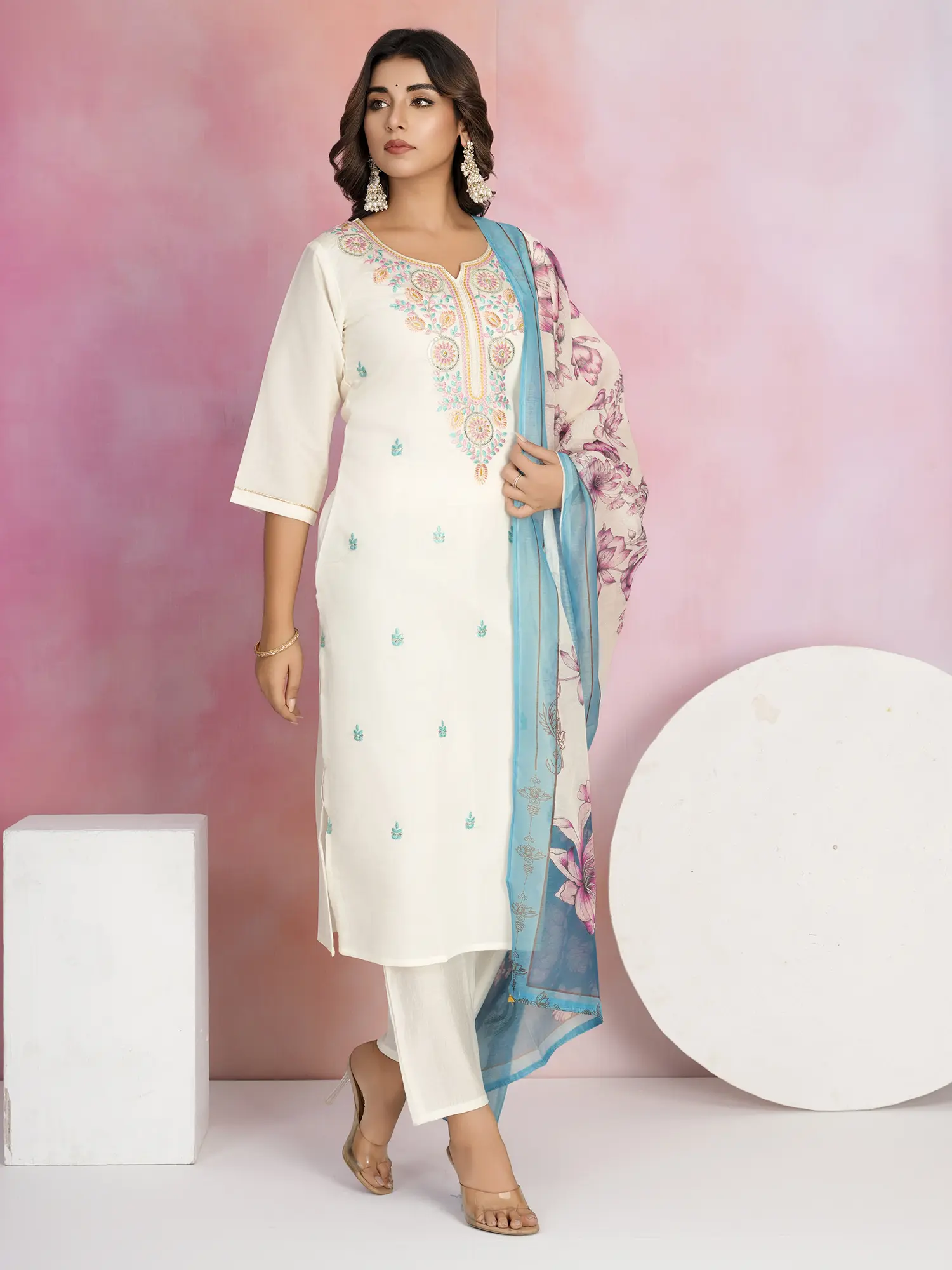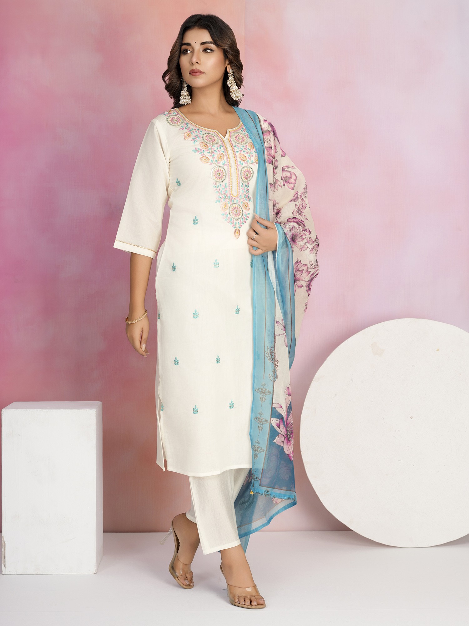 Afterglow Floral Zari Woven Organza Kameez with Cotton Salwar and Dupatta