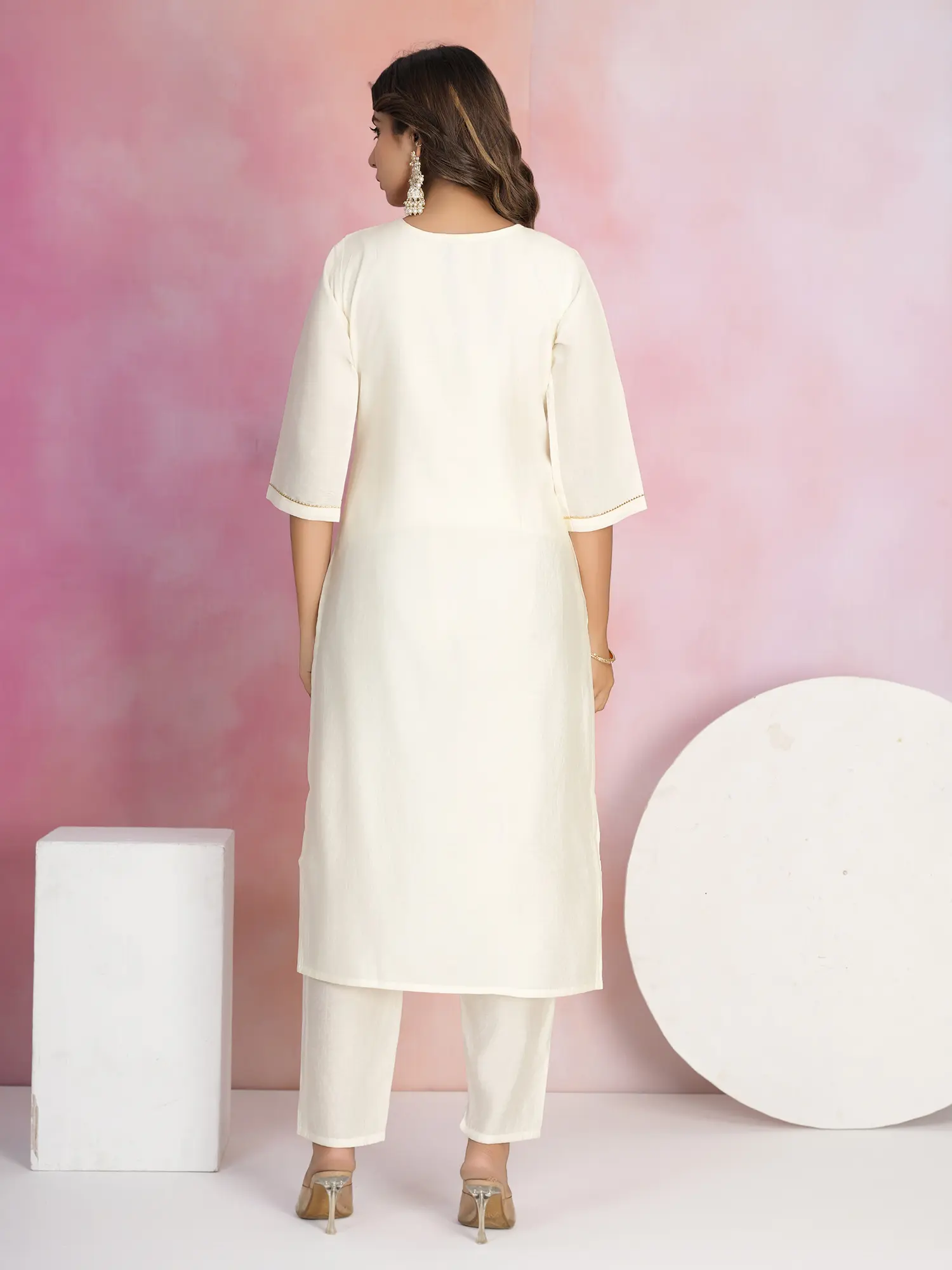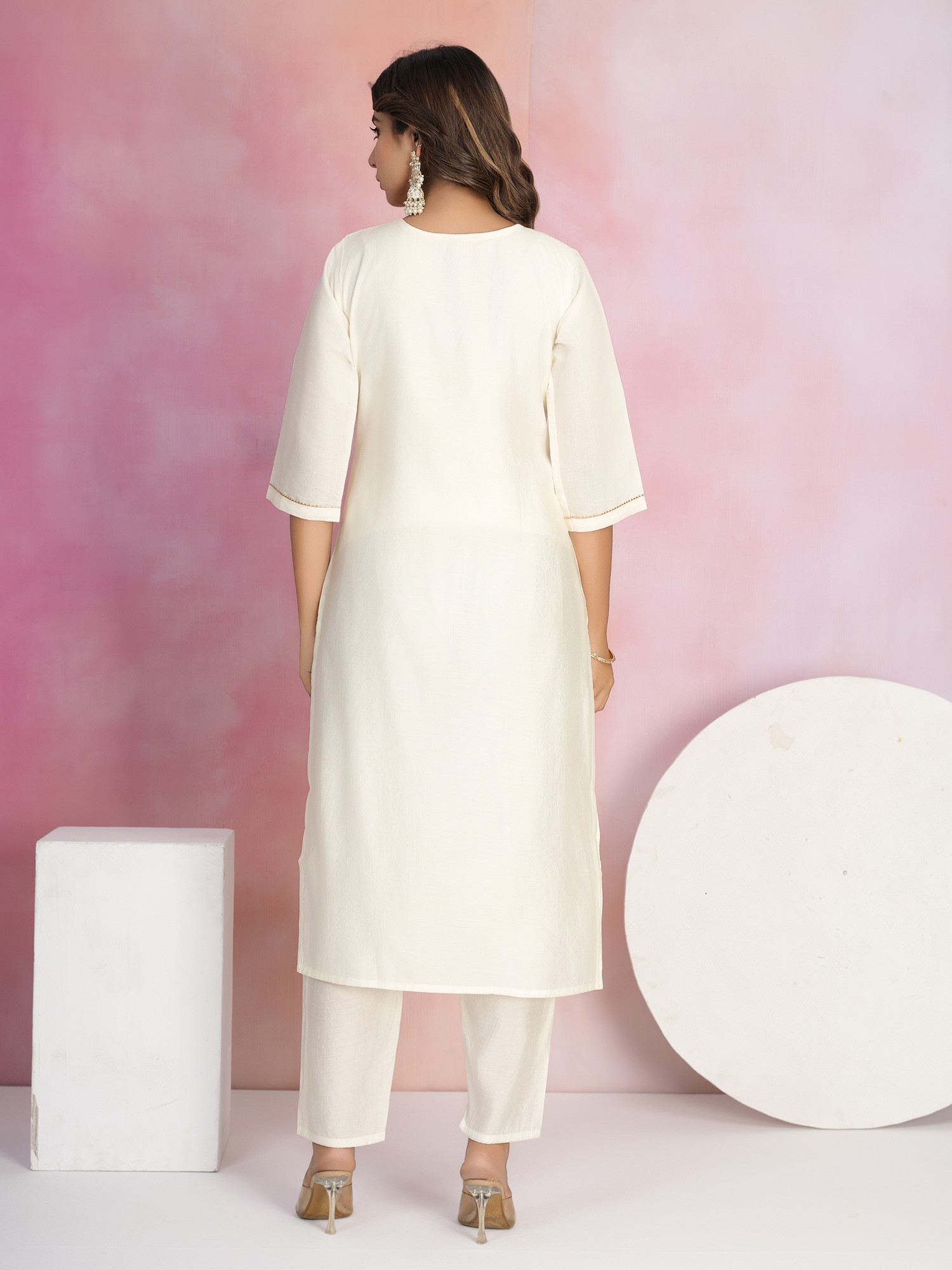 Cotton Rayon Kurti Set with All-Over Floral Handwork