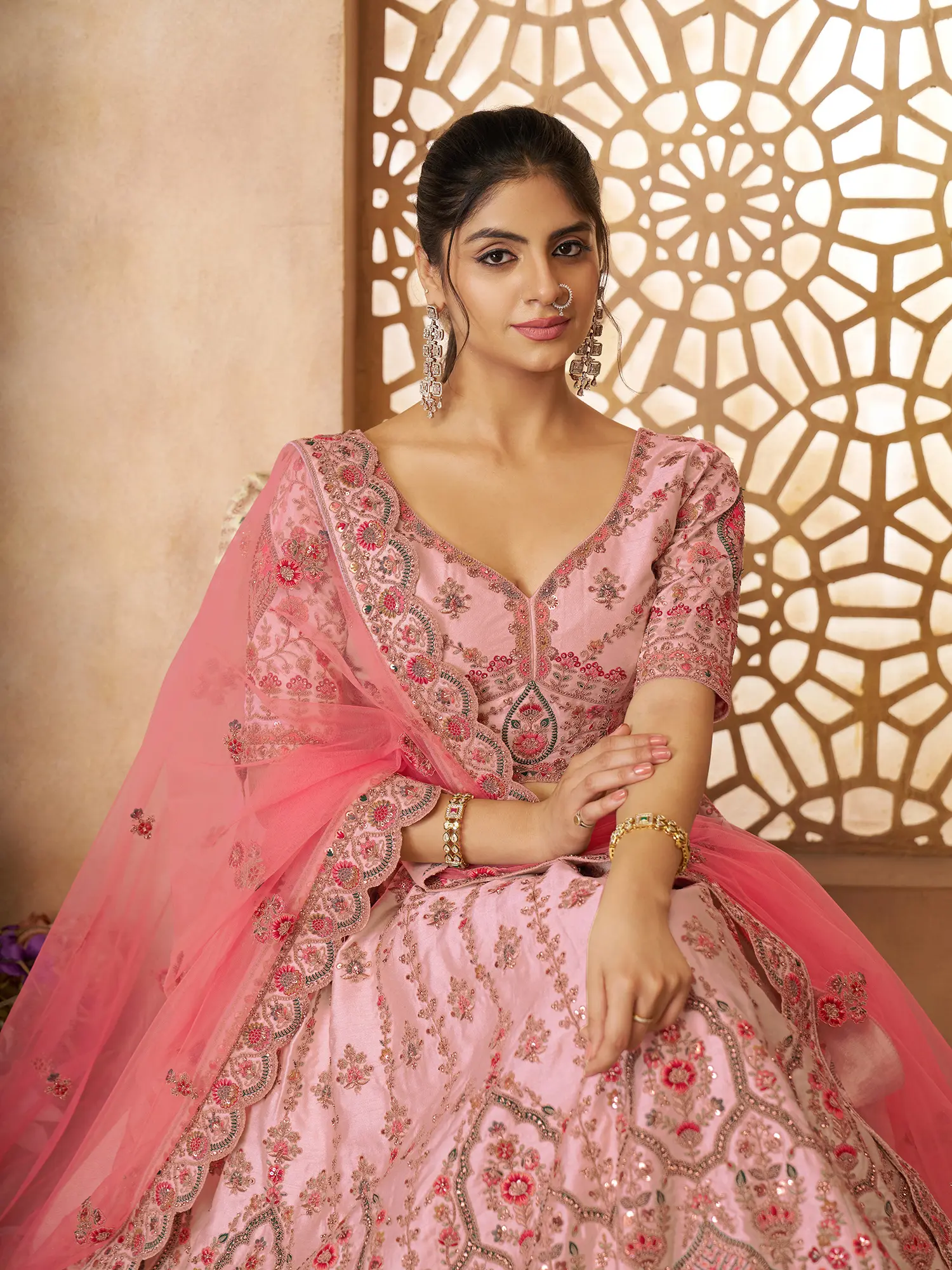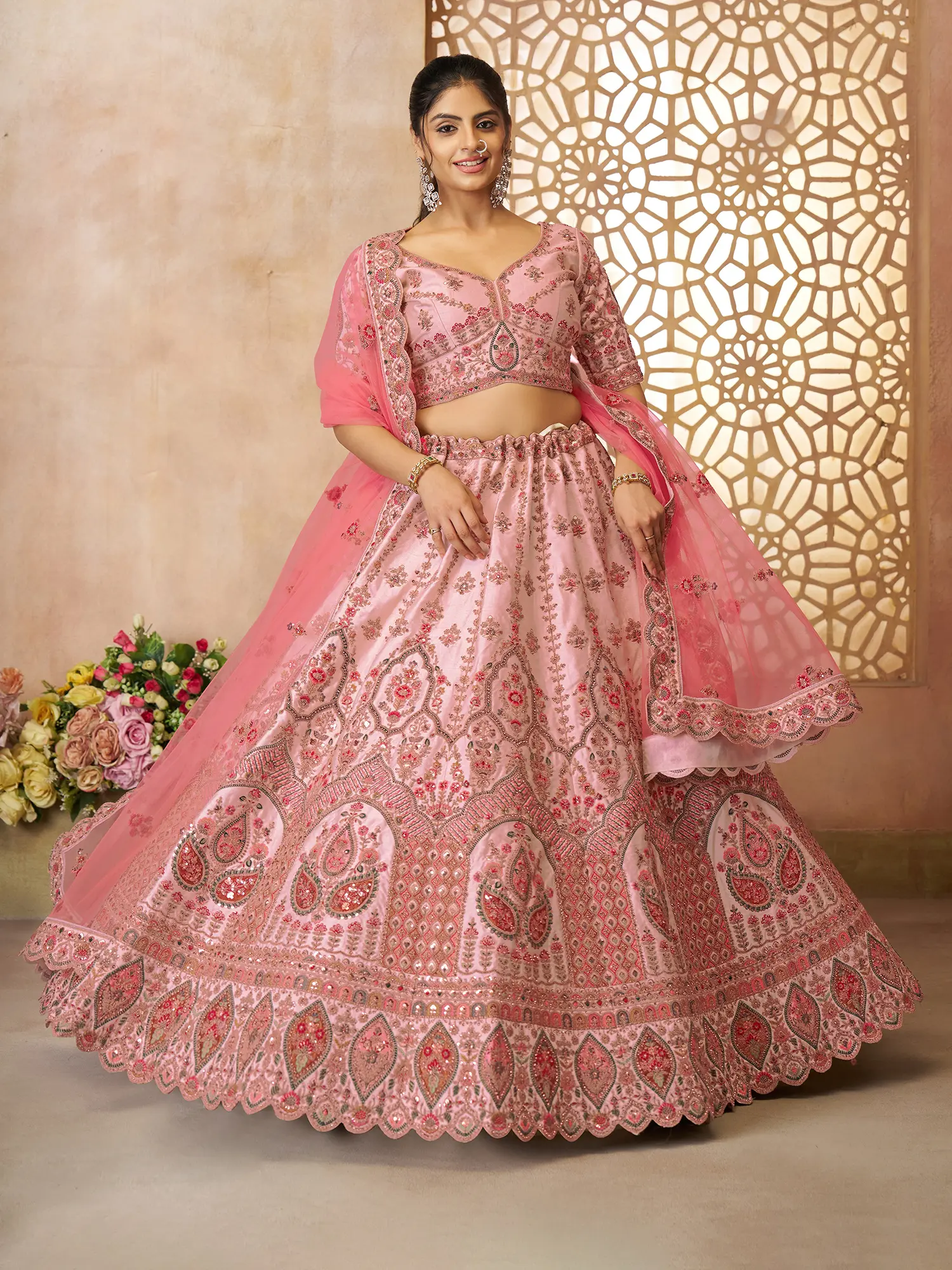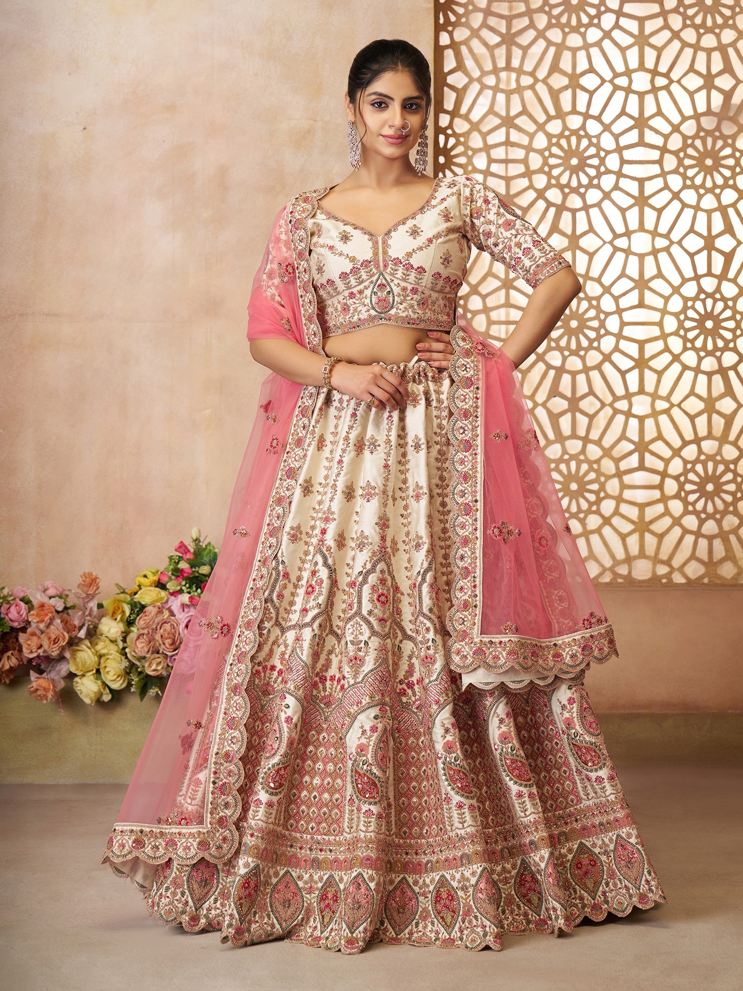 Floral Sequins And Embroidery Work Pure Cosmos Jacquard Elegant Lehenga Choli With Dupatta